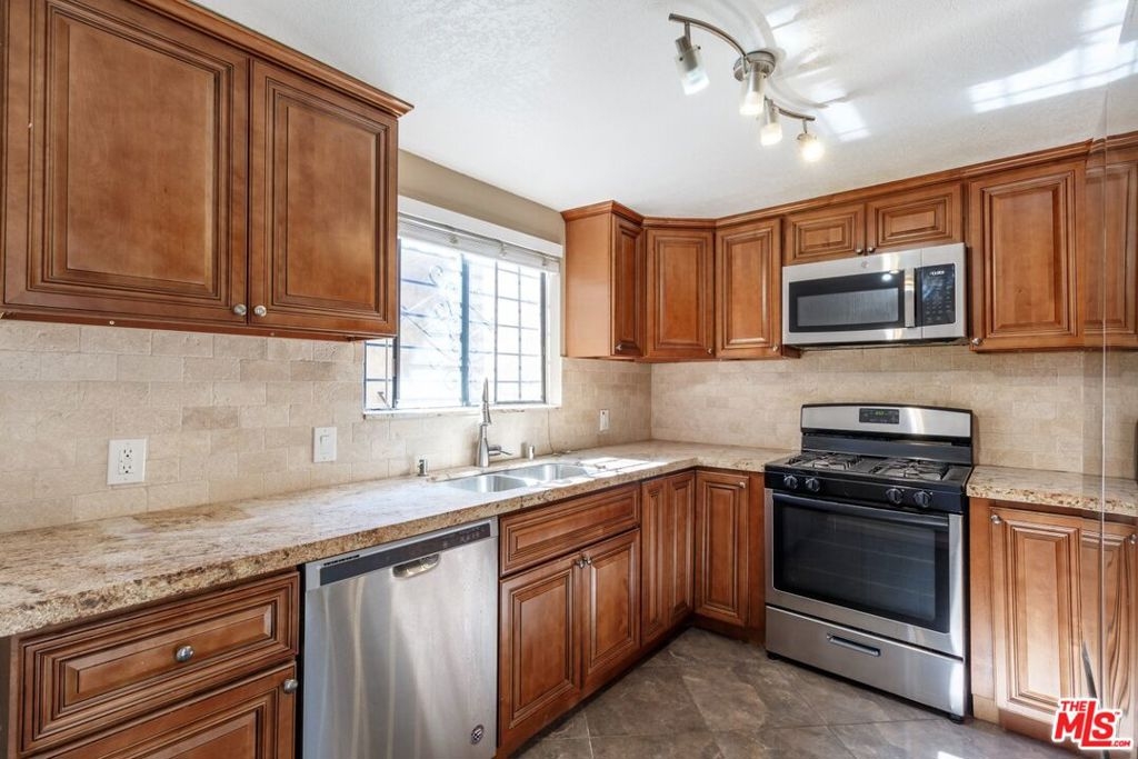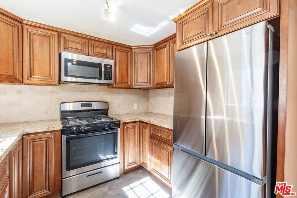 Welcome to a move-in-ready, open-concept townhome with 3 bedrooms and 2.5 bathrooms. The most convenient location is next to Panorama Mall and quick access to 405, 5, and 170 freeways. A friendly and well-maintained community with only 14 units. The unit features 1,230 SqFt of living space. Downstairs: a living room with fireplace, a formal dining area, a gorgeous kitchen with lots of cabinets and granite countertops, a powder room, small bedroom/office, a laundry area, and a patio. Upstairs there are two ensuite bedrooms with high ceilings, neat bathrooms, walk-in closets, and a balcony. Central air & heat is controlled by a NEST Thermostat. Other features include skylights, elegant diagonal tile on the main level, and newer carpet flooring upstairs. Side-by-side 2-car parking and additional storage in a gated parking garage.