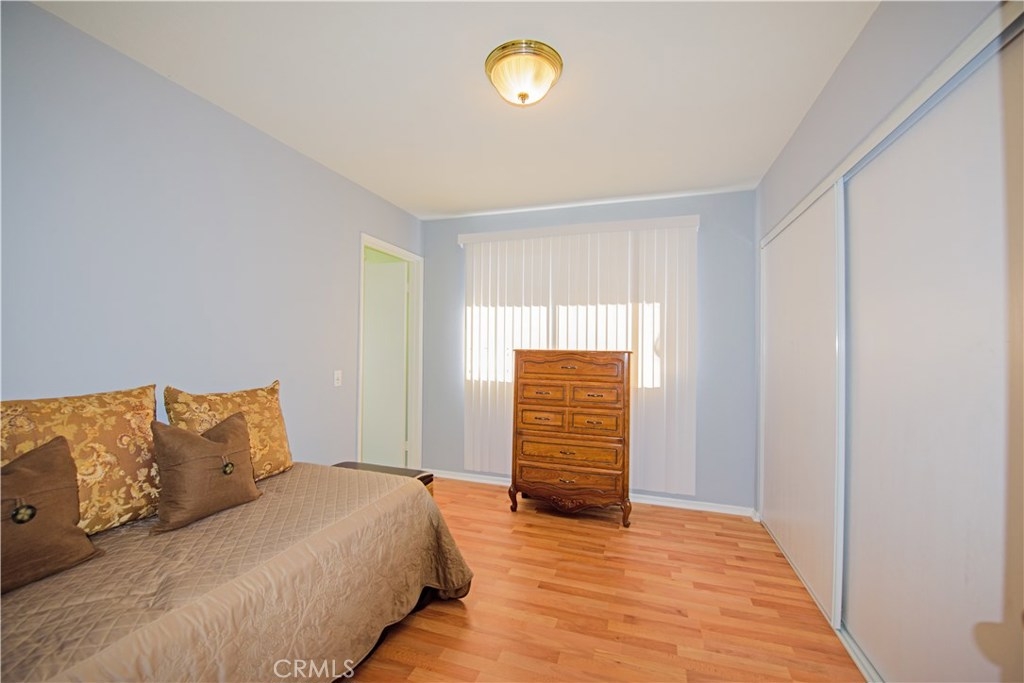 STOP LOOK NO MORE! This 2 bedrooms, 2 baths, private patio, Tri level condo is situated in a gated community, has A LOT to offer an upcoming growing family. The 1st level you enter the 2 car garage. Upon entering the 2nd level from the garage or front door, you land into a nice size living room with a mantel over the cozy fireplace for those chilly, cool nights. The bathroom on the 2nd level, has new wood floor and sink. Adjacent to the living room is the dining/eating area, with a bright sunny window. Shifting from the dining area, you enter the kitchen that offers you an upgraded counter tops, wood cabinetry, stainless steel double sink and a bay window. Heading to the 3rd level of this well maintained home, the stairs has newly installed wood flooring, both bedrooms presents wood floors and bright natural lighting. This home has central air, indoor laundry/dryer hook-up, popcorn ceiling has been removed, automatic garage doors, 7 month old double strapped water heater and the community offers a pool. The home is centrally located near parks, established diners, easy access to the 405 and 5 freeway. The only thing that is missing is YOU!