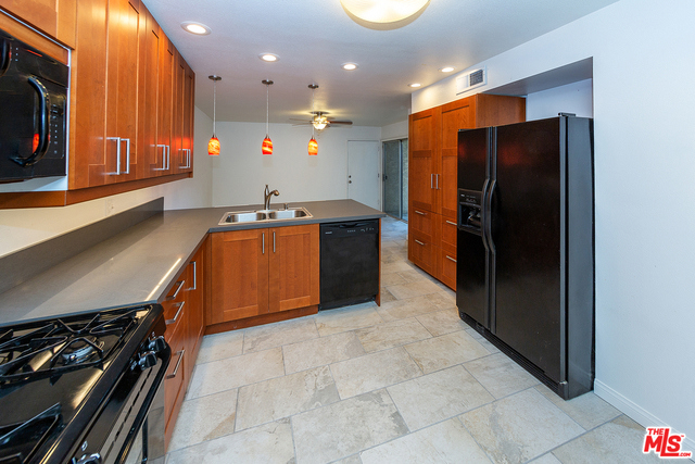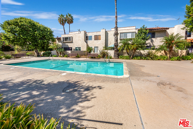 Spacious remodeled rear townhouse unit. Gorgeous kitchen and bathrooms! New flooring! 3 bedrooms, 2 1/2 baths, attached 2 car garage, family room with a breakfast bar adjoins the large kitchen. Living room has big windows and a fireplace. Dining room opens to private patio. Huge master suite with a giant walk-in closet. This big, beautiful townhouse is pristine and ready to go! Lovely complex with pool, convenient to the 405 for easy commuting.