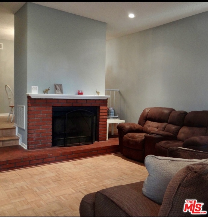 Serene private gated entry, tri-level townhome. Features large living room with beautiful brick fireplace, standalone wet bar, and attached private wood deck. The entry level also has parquet wood flooring, recessed lighting and an expansive formal dining room. Upstairs, enjoy two master bedrooms with ensuite bathrooms and balconies. The larger master also boasts two separate closets and cathedral ceilings. In-unit laundry is conveniently located on this level. On the ground floor, you have direct access to the two-car garage and a sizeable bonus room, currently being used as a third bedroom. The unit was freshly painted. New Carrier HVAC system installed in 2020. The complex is tranquil and park-like with meandering pathways and immediate access to the infrequently used pool. The area is very convenient with the 5 freeway, schools, and plenty of shopping all nearby.