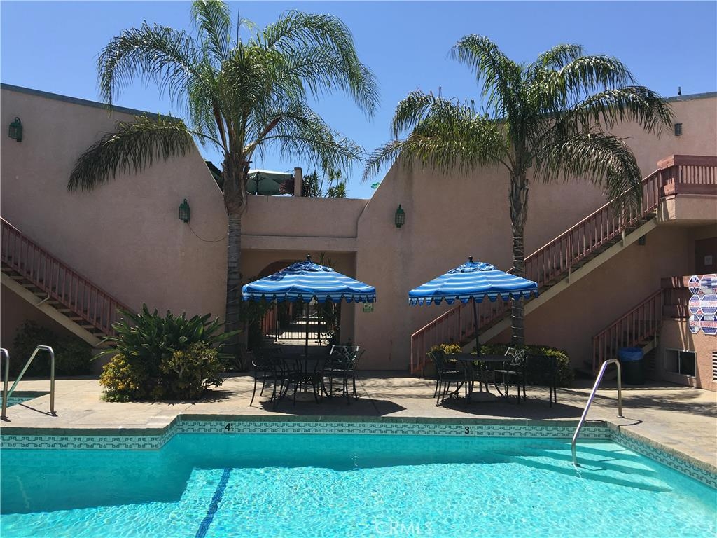 Best Opportunity for First Time Home Buyers or Investors. Charming 1 Bedroom 1 Bath unit with Patio in an Excellent location. Bedroom is large and cozy. Beautiful Laminate flooring, open floor plan, plenty of kitchen cabinets and kitchen counter for breakfast or lunch! Large sliding doors lead to Patio great for entertainment and BBQ or cup of coffee. Patio overlooking Sparkling community Pool and Spa surrounded by Palm Trees and Green plants. The Complex is well cared for, quite and Beautiful. One assigned covered parking space with storage. Laundry areas near parking and near pool. Central Air and Heat. Gated Community. Recreation Room. Great Opportunity !!! Don't Miss It !!!