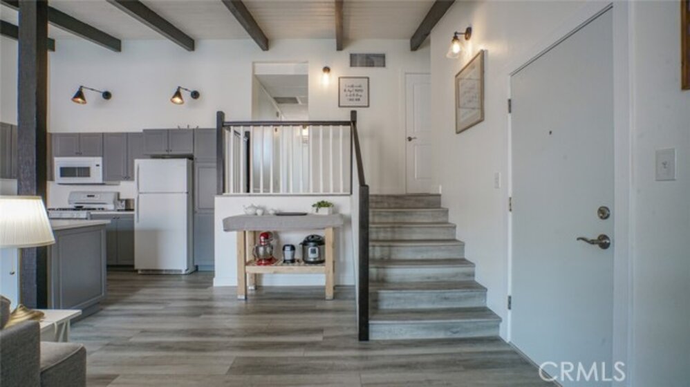 Fully-updated and set within the Taos West complex, this stylish abode is simply waiting for you to move in and enjoy. The light-filled and open-concept living area is set under a pitched ceiling with exposed beams. Reaching 14 feet, these high ceilings ensure a grand sense of space perfect for entertaining. Brand new luxury vinyl plank floors run throughout the entire home.There's a seamless flow from the dining and living room into the well-equipped kitchen with gas cooking, microwave, dishwasher, and quartz countertops with bar seating. A large glass sliding door leads out to the patio where you can lounge in the sun, sip your morning coffee, and enjoy the peace and privacy this unique locale offers. The split-level floor plan puts the bedrooms on the upper level, each with high ceilings and exposed beams, a walk-in closet, and en suite baths. As a resident of this beautifully-updated home, you’ll enjoy access to a community laundry room as well as two covered parking spaces. Everything you could possibly need, from shopping to dining and public transportation, is all within easy reach of this move-in ready home. Come take a tour for the chance to call this home your very own!