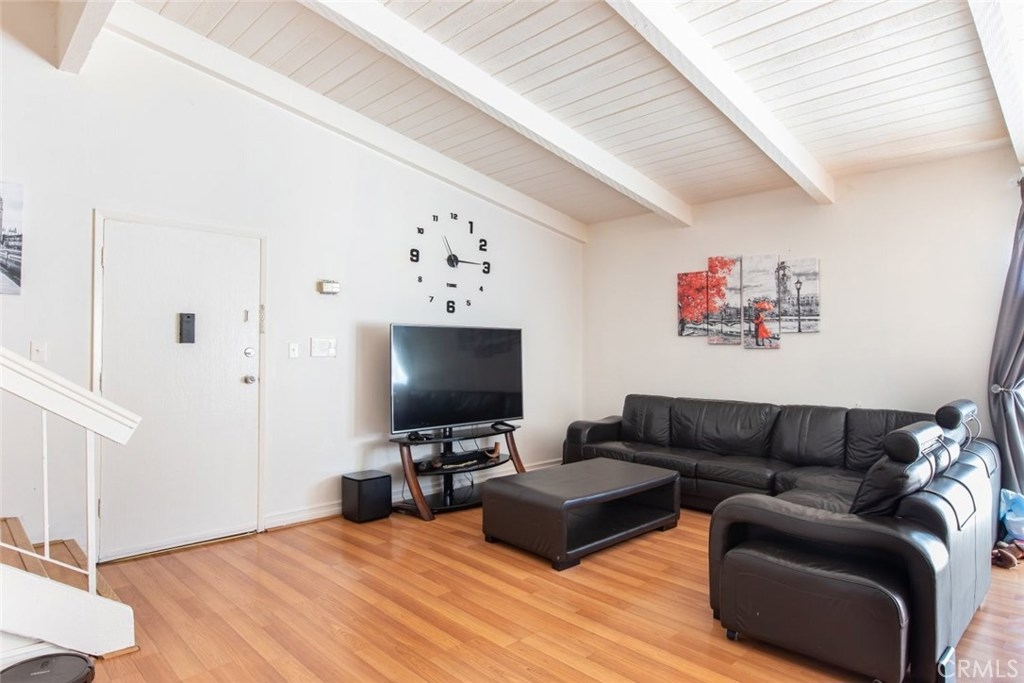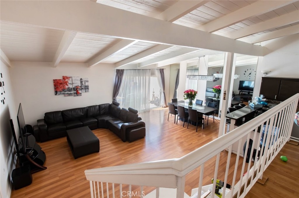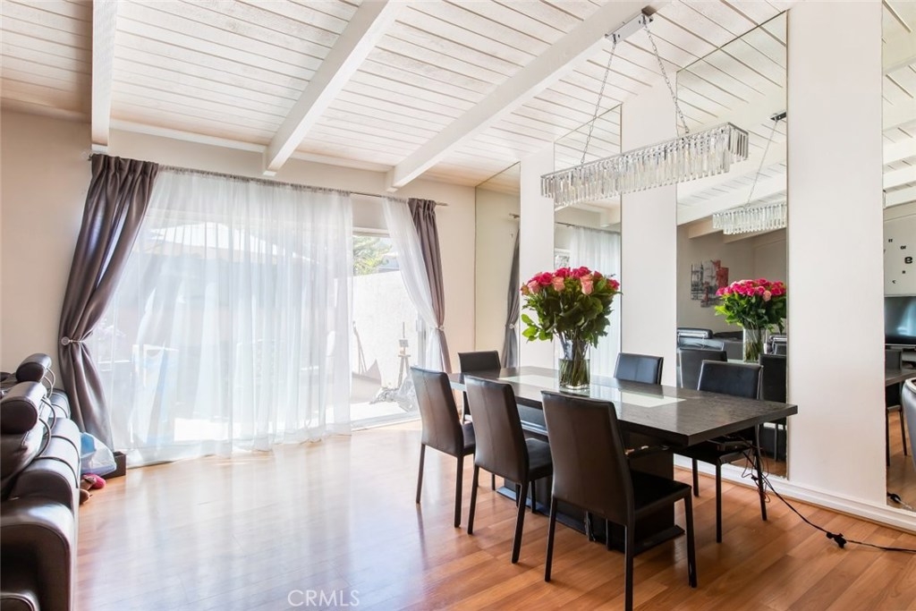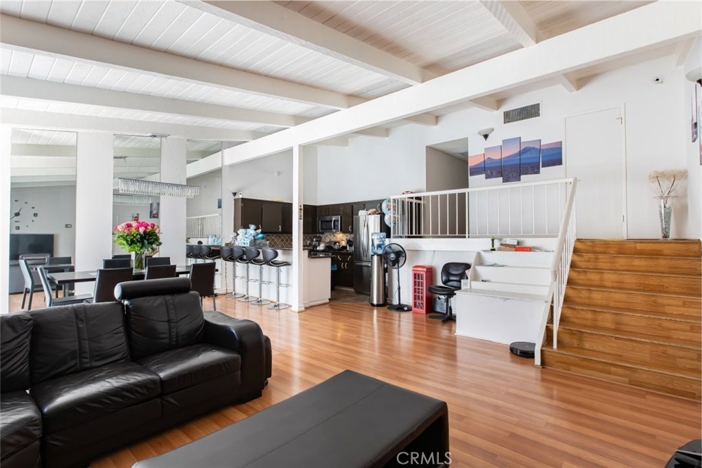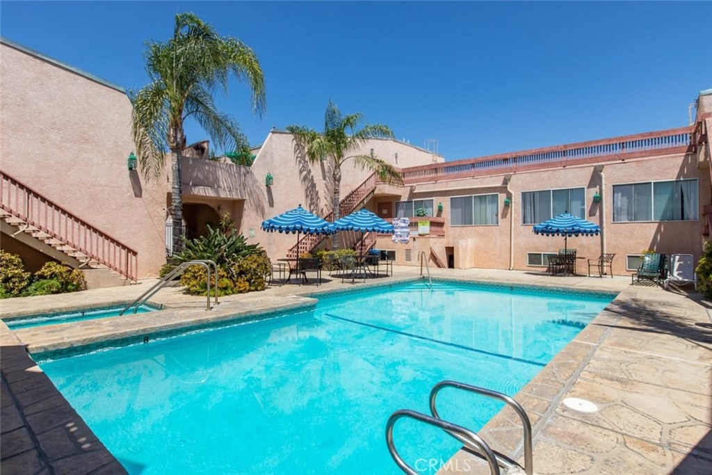Location, Comfort and all the Charm! Located in a sought after area in Panorama City resides a wonderful 2 bedroom, 2 bathroom unit. Inside find soaring high beamed ceilings with a bright and well-illuminated rooms, sleek flooring and baseboard moldings. This is a split level floorplan with a formal living room, dining area and the kitchen on one floor. The dining has a lovely mirror backdrop, perfect for making the room look bigger, as well as sliding doors that lead out to a private patio where you can add outdoor seating. The kitchen features stainless steel appliances, granite counter-tops, a nice decorative backs-splash and even a breakfast bar, perfect for bar stools! The bedrooms in the unit are spacious with a beamed ceiling and they both have ample closet space available. Located in a very well-kept building where you have 2 assigned carport parking spots and access to the community pool and spa.