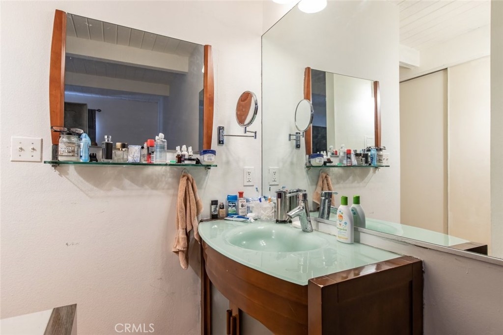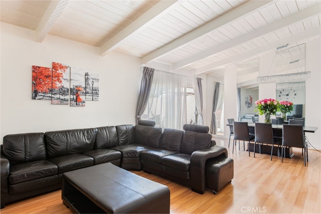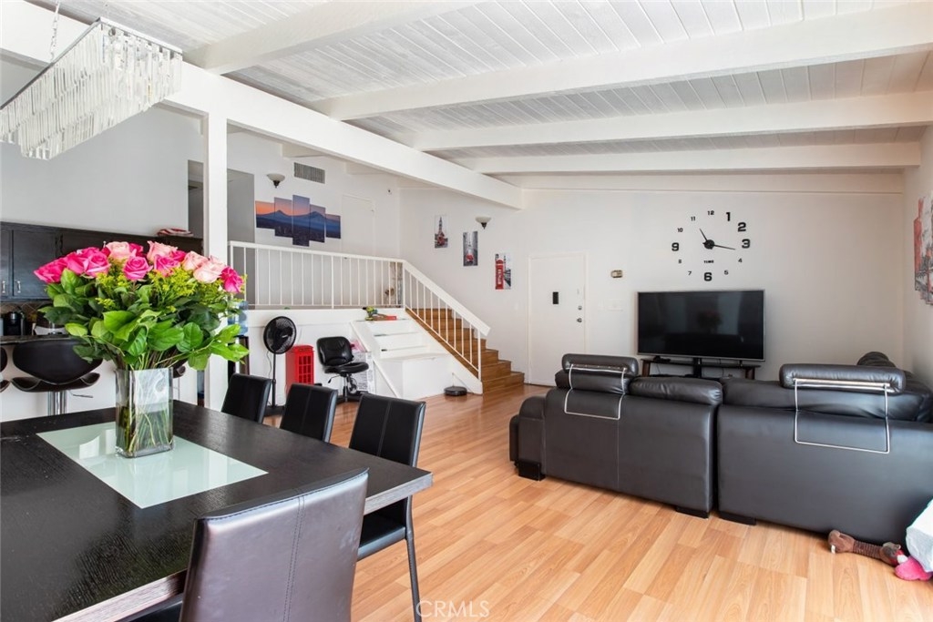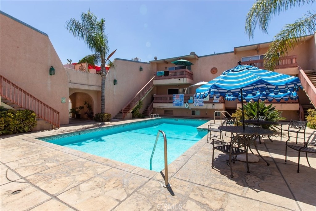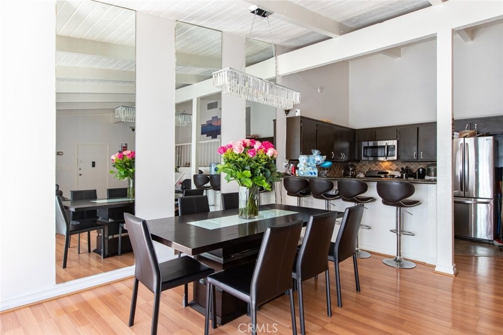 Location, Comfort and all the Charm! Located in a sought after area in Panorama City resides a wonderful 2 bedroom, 2 bathroom unit. Inside find soaring high beamed ceilings with a bright and well-illuminated rooms, sleek flooring and baseboard moldings. This is a split level floorplan with a formal living room, dining area and the kitchen on one floor. The dining has a lovely mirror backdrop, perfect for making the room look bigger, as well as sliding doors that lead out to a private patio where you can add outdoor seating. The kitchen features stainless steel appliances, granite counter-tops, a nice decorative backs-splash and even a breakfast bar, perfect for bar stools! The bedrooms in the unit are spacious with a beamed ceiling and they both have ample closet space available. Located in a very well-kept building where you have 2 assigned carport parking spots and access to the community pool and spa.