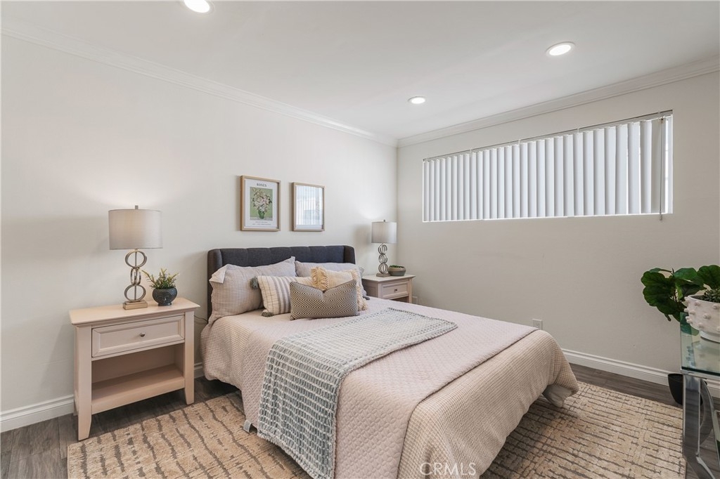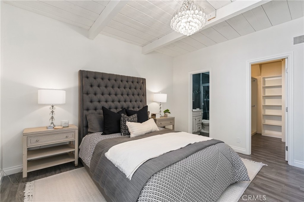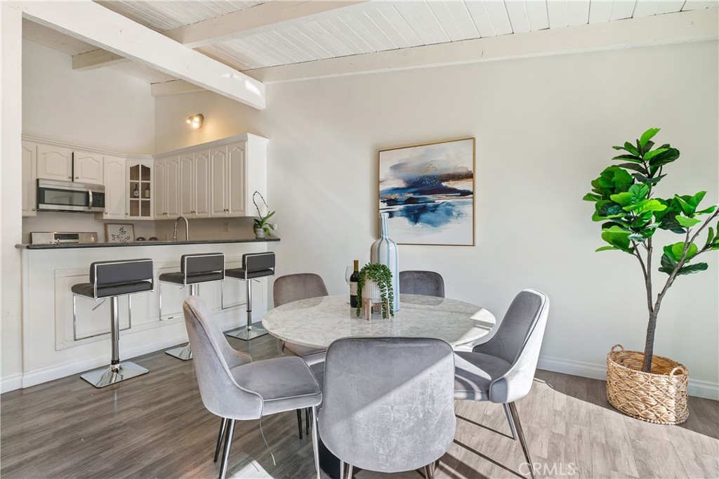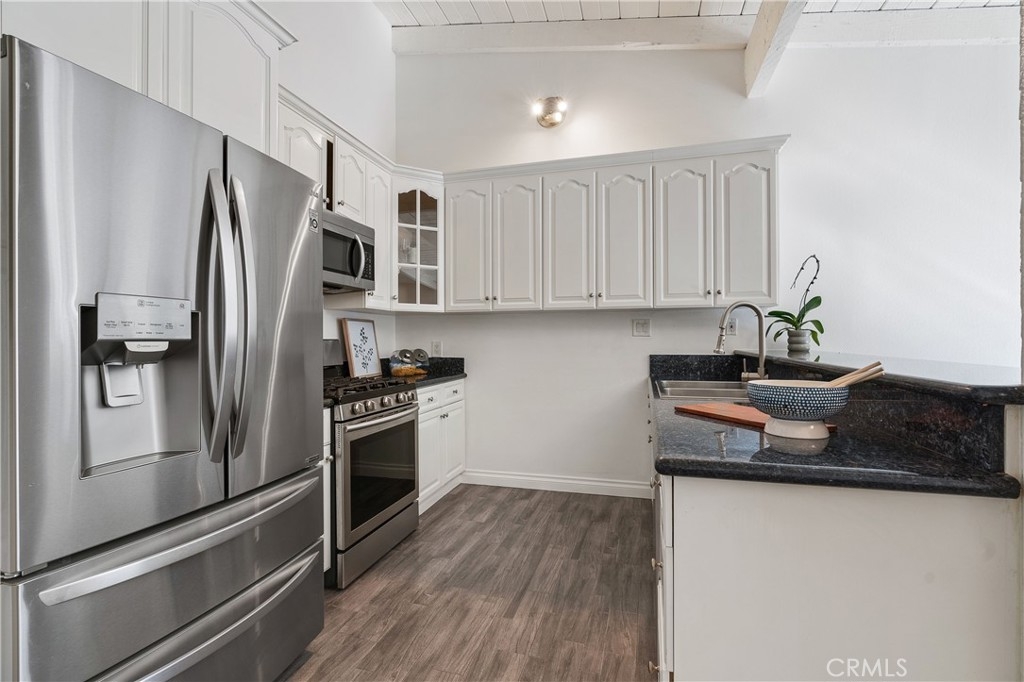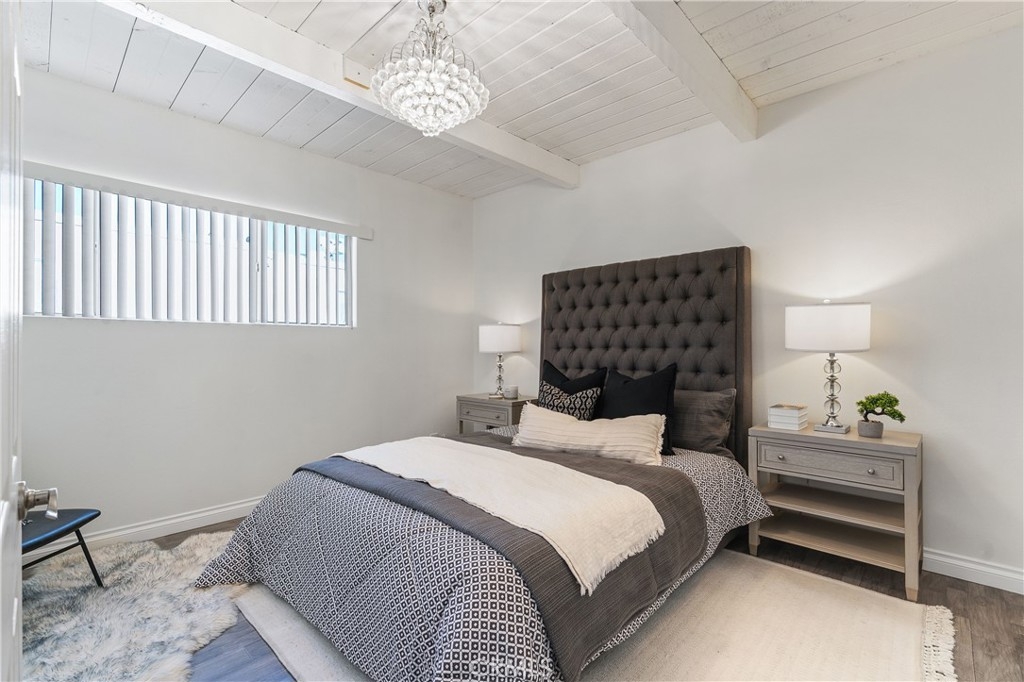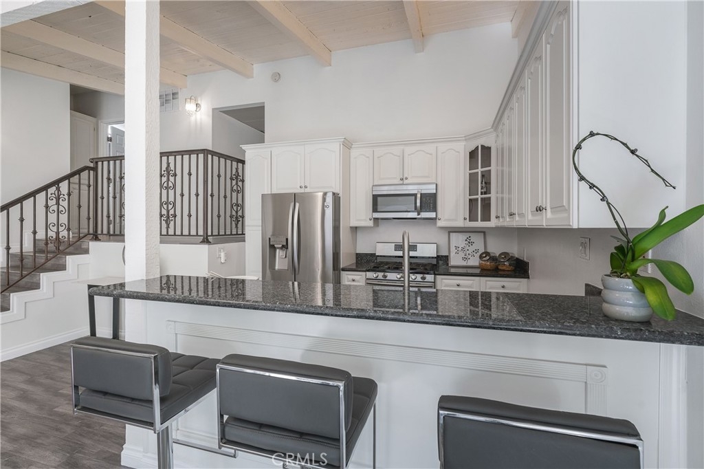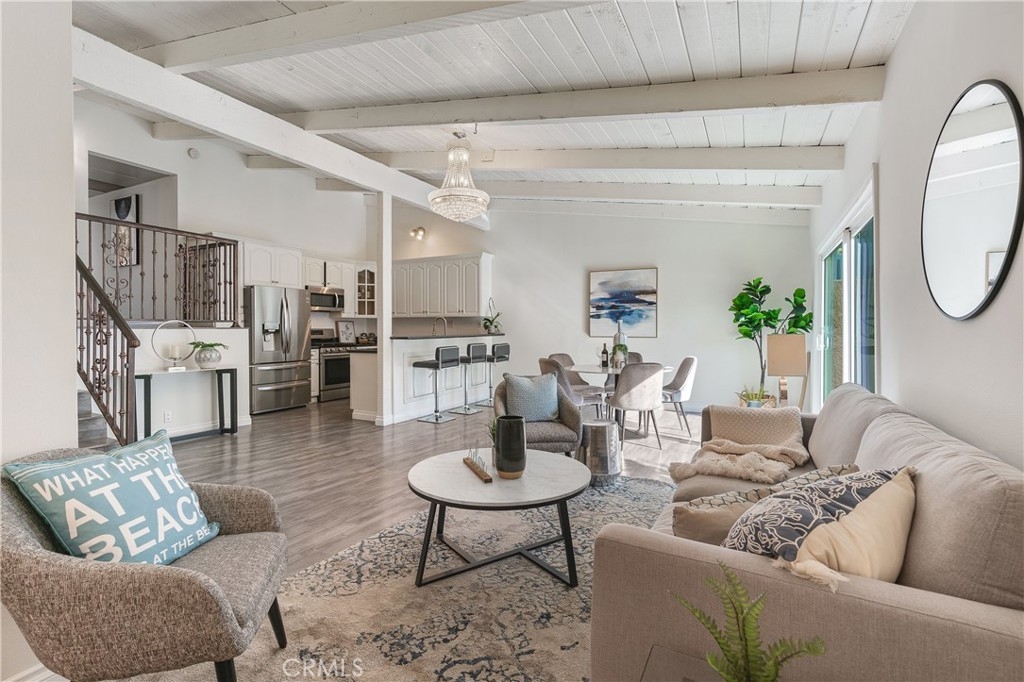 This beautifully designed, open-concept top-level condominium offers an abundance of space and natural light. Nestled within a well-kept gated community, this Resort Style complex boasts a spacious living area with soaring beamed ceilings, creating an airy and inviting atmosphere. The seamless flow into the dining area is perfect for entertaining, while sliding doors open to a large private patio—ideal for relaxing and sipping a delicious beverage or hosting a casual dinner with loved ones. The kitchen is equipped with granite countertops, ample cabinetry, and stainless-steel appliances, providing both style and functionality. Upstairs, you’ll find two generously sized bedrooms, primary with high ceilings and plenty of closet space for added convenience. The complex offers controlled access, a pool and spa, lush landscaping, and a recreation room for residents to utilize for parties and events. HOA covers common areas maintenance, water, sewer, trash, and gas!! Two assigned parking spots and additional storage space enhance the convenience and comfort of living here. Centrally located with easy access to major freeways, shopping centers, restaurants, bus lines, and Kaiser Permanente hospitals, this condominium is an ideal choice for those seeking a resort-style lifestyle in a prime location.
