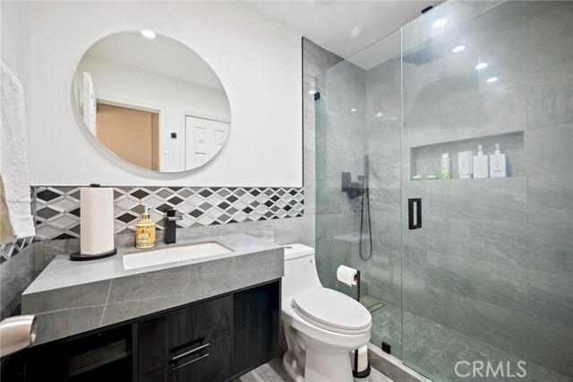 Welcome to Taos West Estates! This beautifully maintained first-floor condo offers 2 bedrooms, 2 bathrooms, and central air and heat. The open-concept layout seamlessly connects the living, dining, and kitchen areas, featuring granite countertops and newly remodeled bathrooms with elegant tile finishes. Enjoy a private, vinyl-fenced patio perfect for relaxing or entertaining. Tucked away from the main road, this unit provides exceptional privacy and peace. The split-level design offers added separation for the upstairs bedrooms. Additional highlights include covered parking with extra storage, a private storage area, and access to a sparkling community pool, spa, and recreation room. Conveniently located within a gated community near Kaiser Permanente, Panorama Mall, local restaurants, and with easy access to the 170, 5, and 405 freeways. A wonderful opportunity to own in the desirable Taos West Estates!
