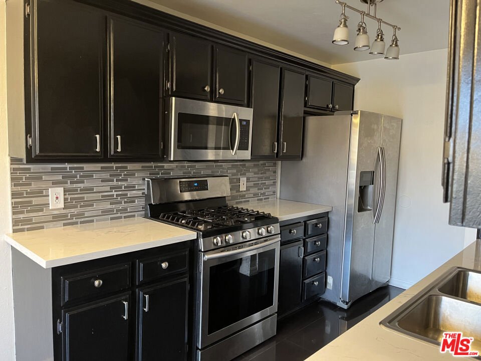 Turnkey, property was redone recently, it is in perfect condition. Fantastic opportunity. This property has everything, great for first time buyers. Tudor style gated complex. Ceramic flooring downstairs and upper level. Over 1006 sq ft. bright and charming back end unit in a small gated community. Lovely living room/with fireplace, adjacent to kitchen and dining area This unit was just totally remodeled 4 years, it show great, it will be a pleasure to show it off. it has 2 good sized bedrooms with master suite walk in closet . 2 baths. 2 side by side car parking spaces with automatic door. Laundry room inside closet upstairs. Brand new dishwasher and a newer refrigerator, washer and dryer, complex securely fenced and gated. conveniently located near schools, parks,