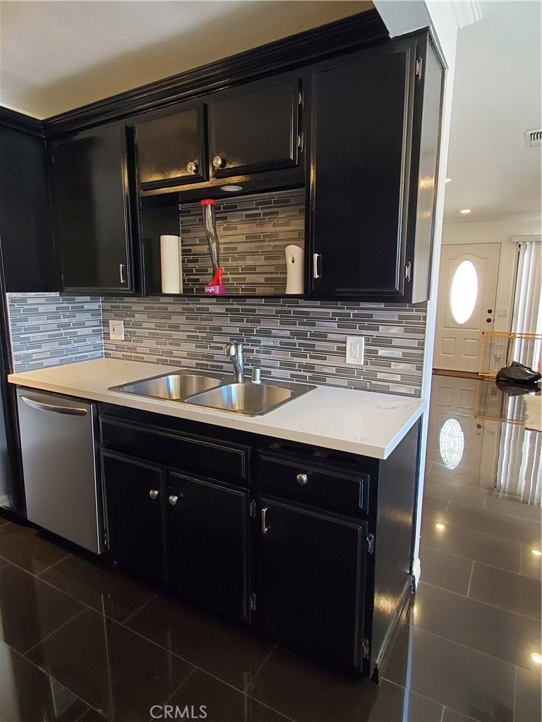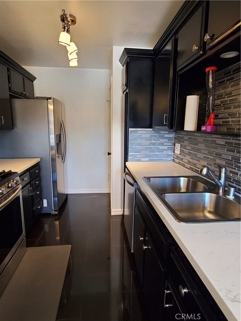 Turnkey, property was redone about 2 years ago, it is in perfect condition. Fantastic opportunity. this property has everything, great for first time buyers. Tudor style gated complex. Ceramic flooring downstairs and upper level. over 1000 sq ft. bright and charming back end unit in a small gated community. lovely living room/with fireplace,adjacent to kitchen and dinning area This unit was totally remodeled 2 years, it show great, it will be a pleasure to show it off. it has 2 good sized bedrooms with master suite walk in closet . one and a half baths 2 side by side car parking spaces with automatic door. laundry room inside closet up stairs. brand new dishwasher and a newer refrigerator, washer and dryer, complex securely fenced and gated. conveniently located near schools, parks, restaurants, stores and a variety of businesses. Easy access to the 405, 170, 5 and 118 fwy. complex not FHA approved. 2 parking space underground 42 and 43