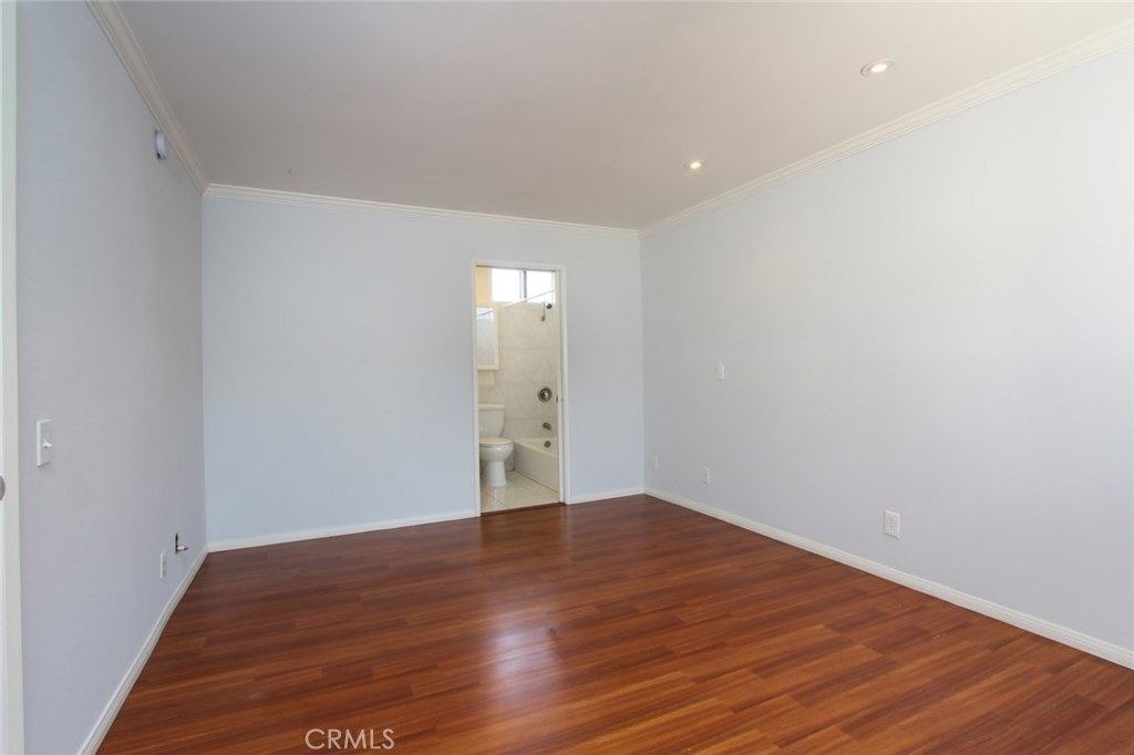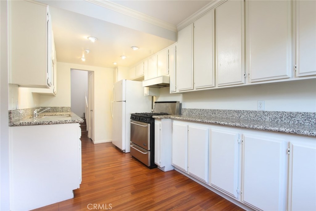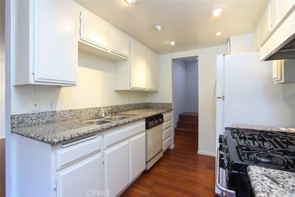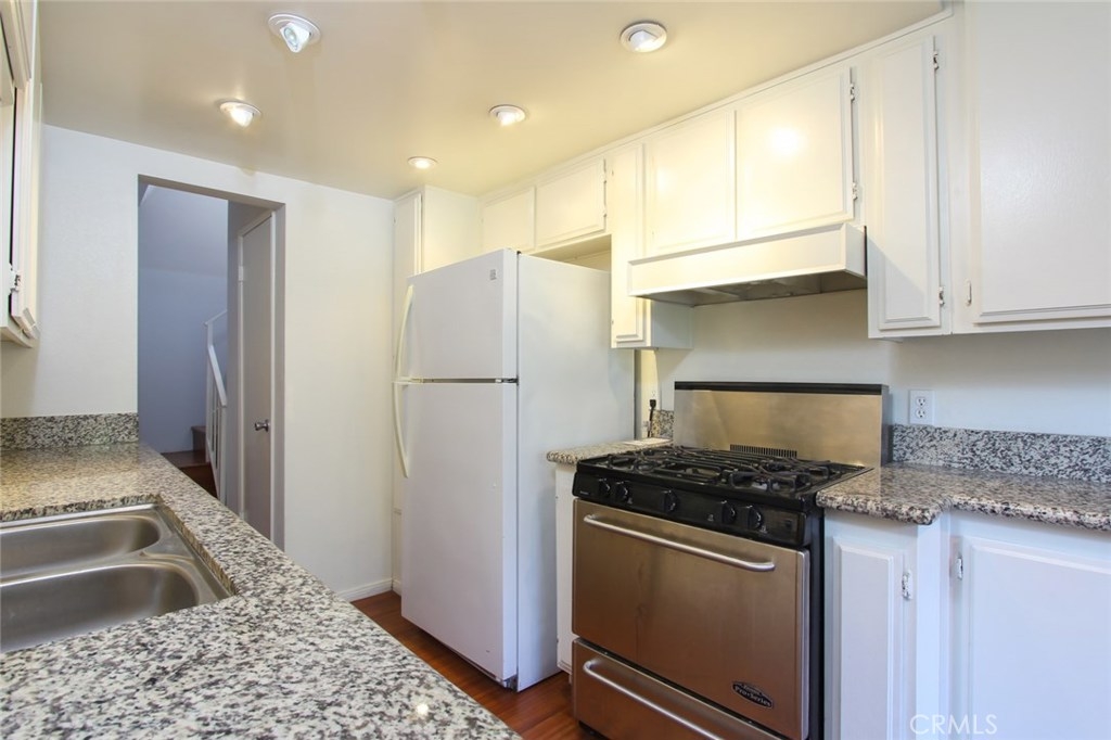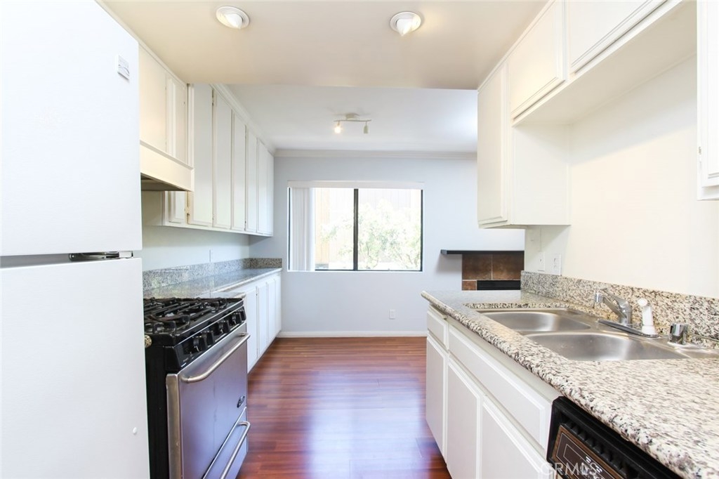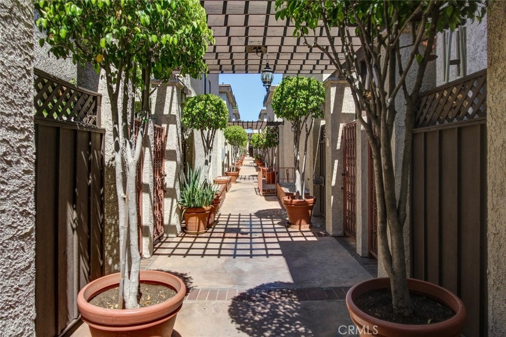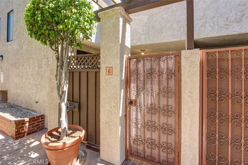 WELCOME to "TUDOR REGENCY" a two story turnkey townhome located in a gated community in walking distance to shopping, dining & public transit. Charming & quaint pathways with manicured potted ficus trees lead you to a private enclosed front patio area perfect for pets or outdoor entertaining. Spacious living room offers laminate flooring, crown molding, recess lighting & modern fireplace with glass slider doors leading to the patio. The adjacent dining area has an abundance of storage cabinets useful as a pantry area or just extra storage sapce. Light & bright updated kitchen with granite counter tops, wood cabinetry, built-in appliances, laminate flooring & recess lighting. Faux painted textured walls accent the contemporary 1/2 bathroom downstairs. Upper level features Master bedroom #1 offers crown molding, recess lighting, laminate flooring, walk-in closet & private full bathroom with tub & shower enclosure. Master bedroom #2 offers crown molding, recess lighting, laminate flooring, wall to wall closet w/mirror doors and private 3/4 bathroom with walk-in shower stall. In-unit laundry is a plus located at the upper level. Subterranean assigned parking has 2 side by side parking spaces. THIS ONE IS A MUST SEE and it's under $300K and did I mention the LOW HOA fees!