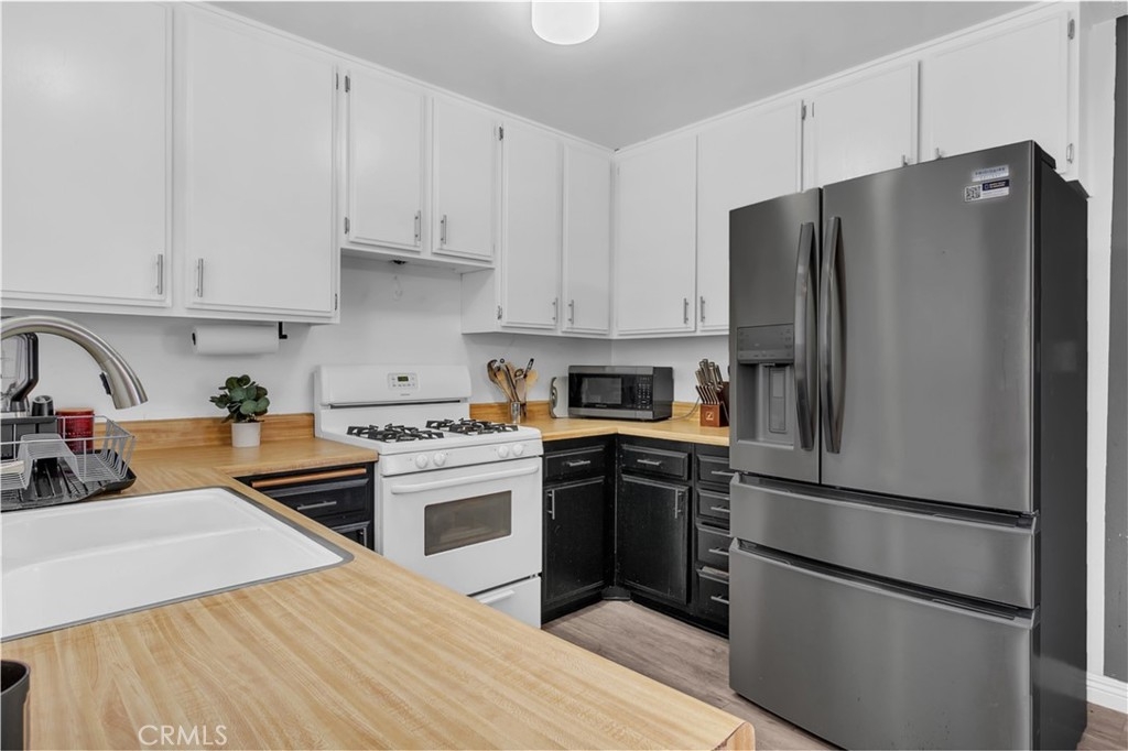 Welcome to Village Green West, a sought-after community in Panorama City offering resort-style amenities including a swimming pool, tennis courts, and guest parking. This charming top-level corner unit features 2 bedrooms, 1 bath, and 875 sq ft of living space, with a private stairway entry and private balcony—perfect for added privacy and ideal for entertaining. Inside, you’ll find updated flooring, a renovated bathroom, a modernized kitchen, and a dedicated laundry closet. The unit is equipped with central A/C (approx. 6 years old), a smart thermostat, security system with cameras, and an electronic deadbolt for peace of mind. Additional upgrades include a newer water heater (less than 10 years old), a freestanding range, dishwasher, and an EV charger in the attached two-car garage, with a convenient side door entry—both ideal and practical. This unit shares only one common wall. Conveniently located near major freeways (5, 405, 118), CSUN, local parks, schools, and popular shopping destinations like Northridge Mall and Panorama Mall. This move-in-ready condo is a fantastic opportunity for first-time buyers, investors, or anyone seeking comfort and convenience in the heart of the Valley!