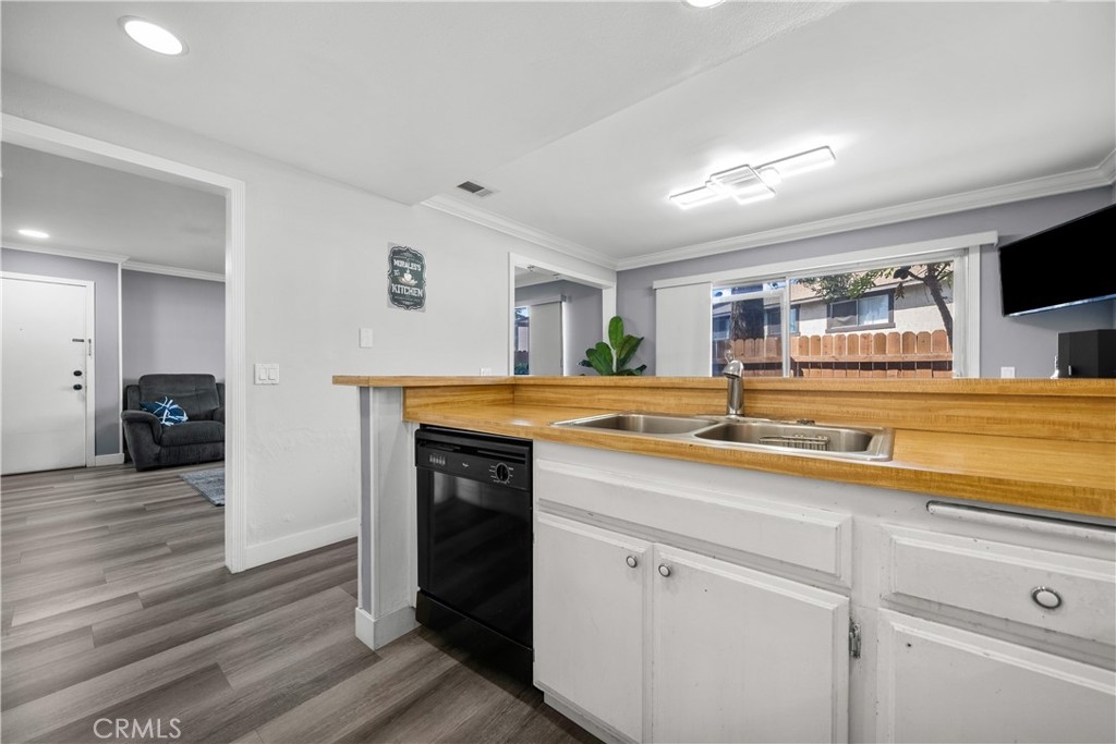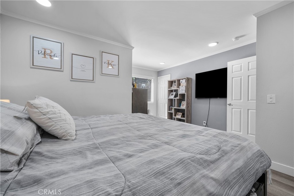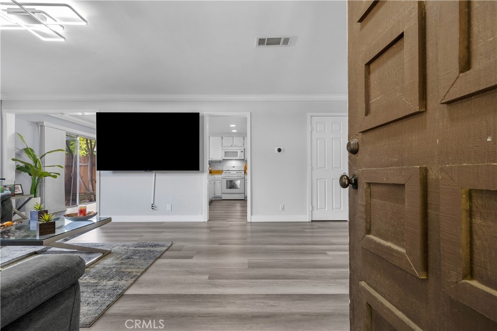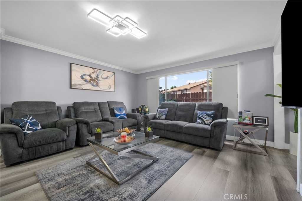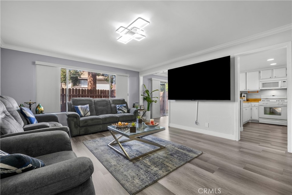 This beautiful condominium is one of the highly sought-after quiet end units and is nestled in a great community in the heart of Panorama City. Here are just a few of its many other fine features: You'll step into a flowing 1,301 square foot open concept floor plan that is in "Move-In-Condition" with elegant crown molding, recessed lighting, custom LED light fixtures, a freshly applied designer paint scheme, and new waterproof laminate flooring + The spacious living room is bathed in natural light from a large picture window. The family's cook is going to truly appreciate the kitchen's abundant cabinets, ample counters, durable dual basin stainless steel sink, built-in appliances, and the convenience of the large adjoining dining area with its direct patio access. 3 bedrooms + 1½ bathrooms; The ½ is located on the first level for your guests. Functionally located laundry area + Central air & heat for year-round comfort + 2 car direct access garage. You're going to experience "Resort-Style-Living" enjoying the communities lush greenbelts, sparkling pool, and lighted tennis court. Great location close to schools, grocery stores, restaurants, shopping, 5 & 405 freeways.