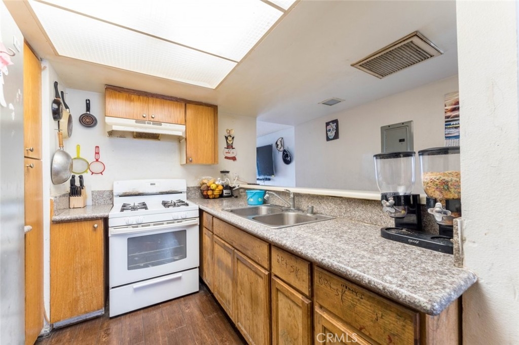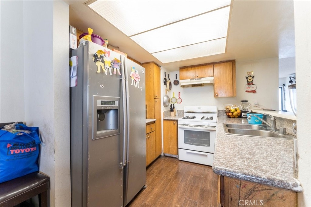 Great investment! On a neatly manicured street in Panorama City, a lovely 2-bed, 2-bath, single-story condo set within the Willis Villas II. Residing on the second floor, find a spacious home featuring golden honey tone laminate floors throughout and plenty of natural sunlight from the large windows. The well-sized living room first greets the entry and includes sliding door access to the private balcony overlooking the complex, perfect for versatile entertaining all-year round. Enjoy delightful dinners from the separate dining room just off this user-friendly kitchen equipped with built-in appliances, wood cabinets, and granite countertops. Both bedrooms include plenty of built-in closet space while the largest houses a private attached bathroom with a shower stall. Residents of this gated complex are provided with uncovered parking spaces, an on-site communal laundry area, and a glittering community pool. Located nearby to 24 Hour Fitness, Valley Indoor Swap Meet Panorama City, Sepulveda Rec Center, local schools, markets, shops, plus easy access to the 405 Freeways!