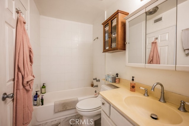 Fantastic first-time buyer/investor top floor condo in gated community! The kitchen has lots of new cabinets for plenty of storage and new countertops. There’s also lots off natural light from the skylight and windows. The living room has vaulted ceilings. marble flooring & fireplace. Other features include washer & dryer inside the unit, new central air & heat, large balcony w/pool view, private 2 car garage w/ new garage door & new overhead storage. Private stairwell only shared with one other condo. Washer/dryer, oven/stove, refrigerator all included. LOW HOA at $250 with guest parking available! Easy walking distance to grocery stores, restaurants/fast food. Playground for children right next to the complex which includes some exercise equipment for adults. Very close to freeway entrances for the 5 and the 118. Public transportation stops very close by. Walking distance to public middle school and high school.