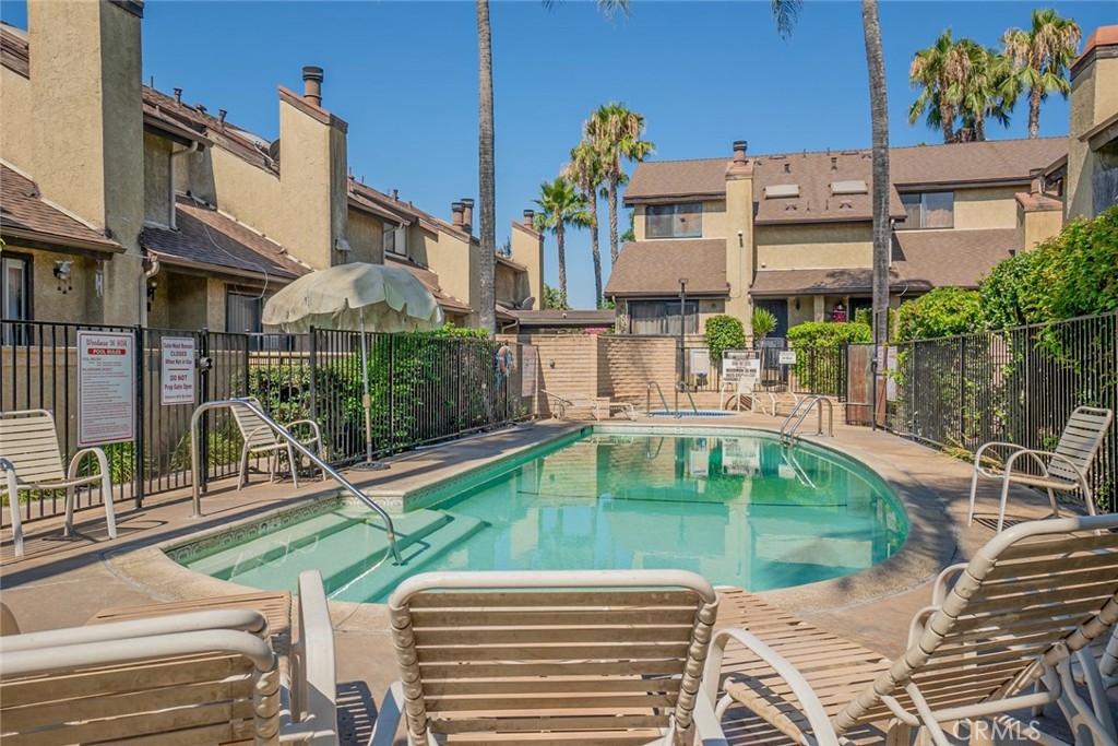 BACK ON THE MARKET!! Welcome to this delightful 3-bedroom, 2-bathroom Townhome, offering 1,145 sq ft of comfortable living space. This home perfectly blends privacy, functionality, and style, making it an ideal choice for various buyers. Property has recently had exterior paint done giving it a clean modern look. Step inside to an inviting open layout bathed in natural light, seamlessly connecting the spacious living area, dining space, and kitchen. Enjoy your private front patio, perfect for relaxing, entertaining, or savoring your morning coffee. The property boasts tile flooring throughout the main level and laminate wood flooring upstairs. All three bedrooms are located upstairs for privacy. They feature mirror closet doors and closet organizers, with one bedroom offering high ceilings. For added comfort, all bedrooms are equipped with ceiling fans, and two of them provide their own private balcony space. Convenience is enhanced with in-unit laundry hookups located in the two-car garage, and all appliances are included. This home is situated within a gated complex that offers resort-style amenities, including a sparkling pool and spa, lush landscaping, and walking paths. Additional highlights include assigned parking and a prime location with close proximity to shopping, dining, schools, and freeway access. Whether you're a first-time homebuyer, looking to downsize, or seeking a smart investment opportunity, this move-in ready condo truly checks all the boxes!