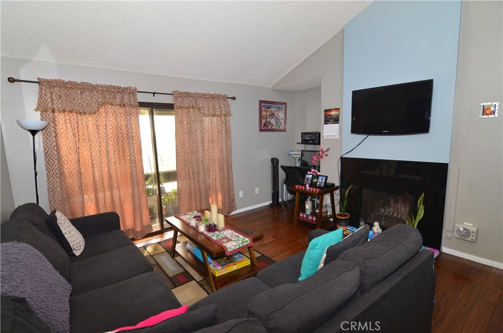 This is a must see!!! Perfect for first time buyers. This original 1 bedroom + bonus room/ 1 bath gated community unit is in ready to move in conditions. New interior paint, laminate wood floors and tile, granite counter tops, laminate flooring in bedrooms. Cozy fireplace in living room. Large closet. Low HOA dues. Washer & dryer hookups inside unit for your convenience. Private 2 car garage parking with new garage doors. Community pool. Hurry, don’t miss out!!! This unit comes with a view of the park for your relaxing moments.