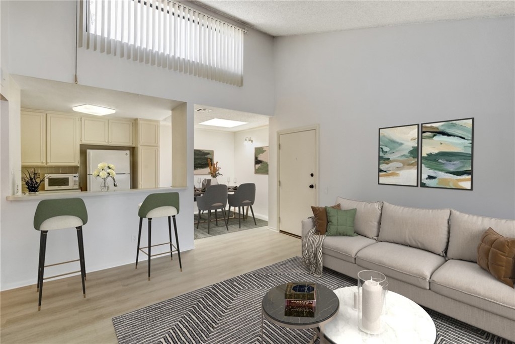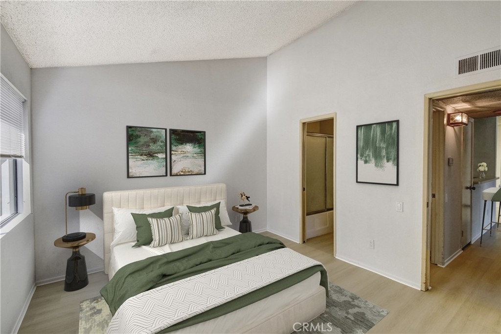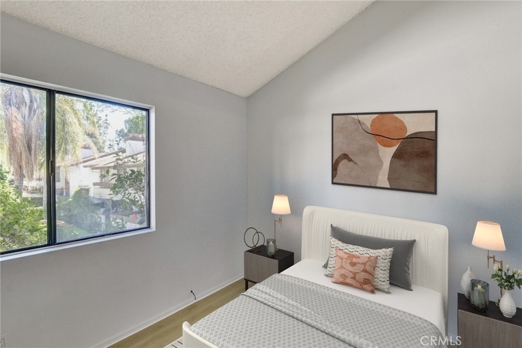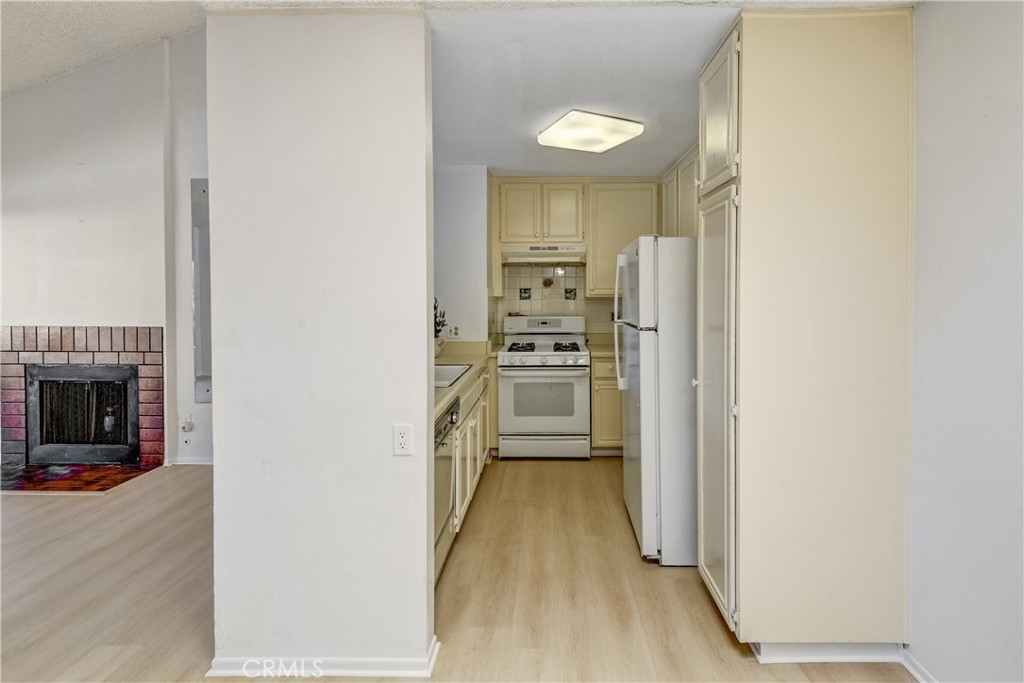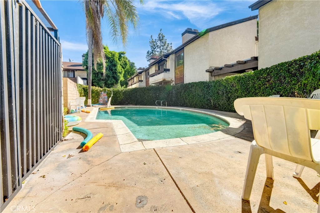 Step into this welcoming and well-appointed 2-bedroom, 1-bathroom condo unit, meticulously refreshed with a brand-new, stylish flooring, and a fresh coat of paint that adds a vibrant and inviting atmosphere. Situated within the secure and peaceful gated community of Panorama City, this residence effortlessly combines comfort and convenience. As you enter, you'll be immediately drawn to the inviting living room, adorned with high, vaulted ceilings and a snug gas fireplace. The glass doors gracefully lead to your private outdoor patio balcony, providing a serene oasis for relaxation. This seamless open layout flows into the dining area, beautifully illuminated by a skylight, and the adjoining kitchen, forming a bright and expansive great room. In the hallway, you'll discover a convenient washer and dryer closet for added convenience. This unit comes complete with a 2-car garage featuring an automatic door opener, nestled within the secure confines of an automated gate. Beyond your doorstep, the condo complex showcases meticulously landscaped gardens and a rejuvenating pool, offering a promise of leisure and enjoyment. Positioned at the heart of Van Nuys Blvd, this condo places you within easy reach of a nearby bus stop and a newly established park right next door, making exploration of the neighborhood a breeze. Schools, accessible freeways, and shopping centers are all conveniently situated in close proximity, elevating the practicality of this prime location. This remarkable property comes with a low HOA fee of just $250. This is your golden opportunity to make this pristine condo your very own.