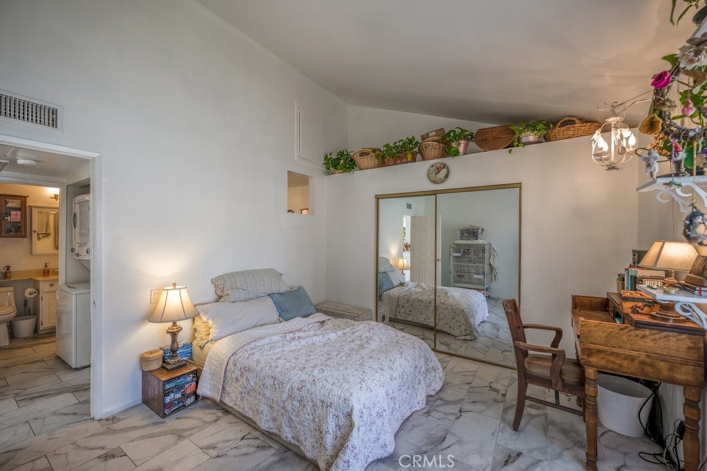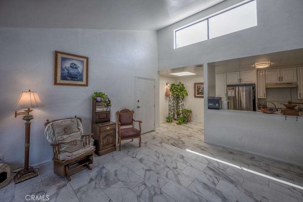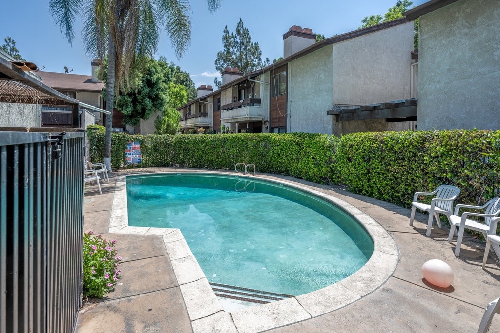 Fantastic first-time buyer/investor top floor condo in gated community! The kitchen has lots of new cabinets for plenty of storage and new countertops. There’s also lots off natural light from the skylight and windows. The living room has vaulted ceilings. marble flooring & fireplace. Other features include washer & dryer inside the unit, new central air & heat, large balcony w/pool view, private 2 car garage w/ new garage door & new overhead storage. Private stairwell only shared with one other condo. Washer/dryer, oven/stove, refrigerator all included. LOW HOA at $250 with guest parking available! Easy walking distance to grocery stores, restaurants/fast food. Playground for children right next to the complex which includes some exercise equipment for adults. Very close to freeway entrances for the 5 and the 118. Public transportation stops very close by. Walking distance to public middle school and high school.