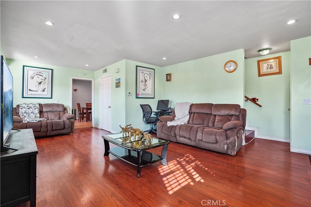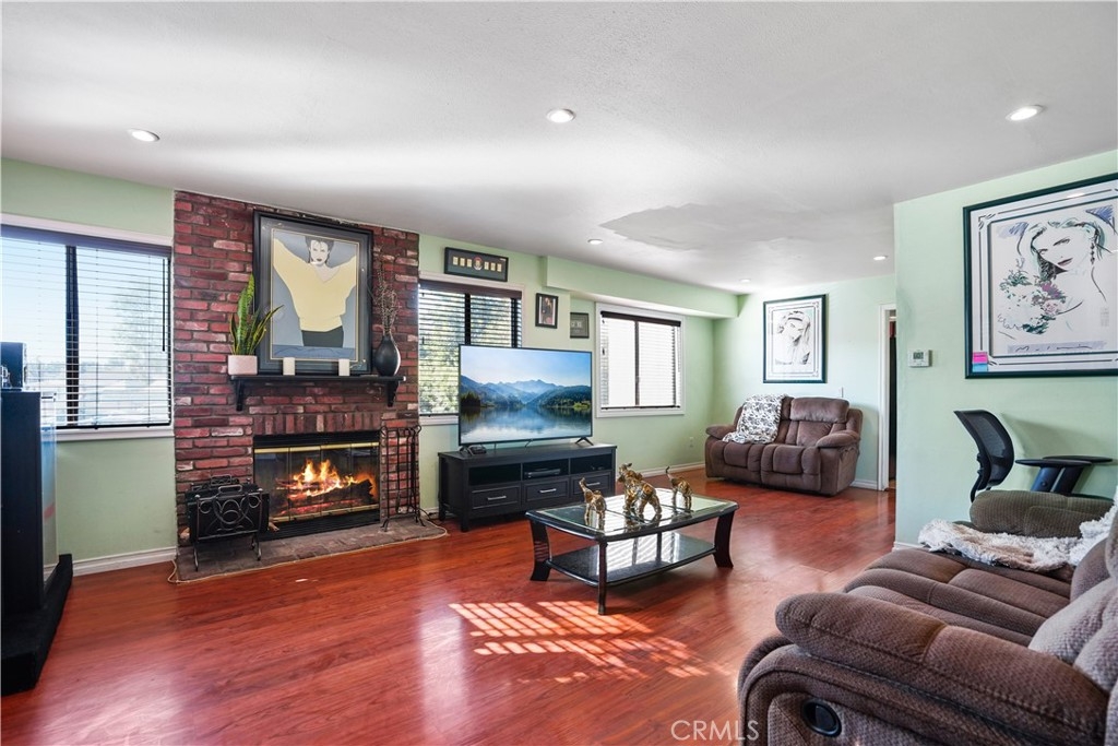 Terra Villas Complex is located in the city of Panorama city. This is tri-level CORNER unit with 2 high ceiling bedrooms. Entrance from Terra Bella St will place you entering the second floor into the living room. Dining and kitchen share a common area. Bedrooms are on the top floor; Master Bedroom with High ceiling with a walk-in closet and master bathroom. Central HVAC, double glass windows and window molding throughout the house. Recessed lights throughout the unit and LED lights in the bathrooms. Wood chimney in the living room ready to bring a warm heat during Winter/Holidays. This unit has been maintained and upgraded by owners. A two car garage with a storage room located inside the garage. From the living room you can open a glass French Sliding Door that leads to a balcony patio. Community pool is just in front of the garage. Two Guest parking spaces close to the garage. Lots of trees around the unit which are maintained by the HOA. Some of the neighborhood benefits are: well-maintained homes, convenient public transportation and easy access to 5 Fwy, Nearby restaurants about 0.3 miles. This CORNER unit has an easy access ramp from Terra Bella St. Virtual Tour and MatterPort available.