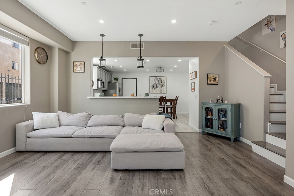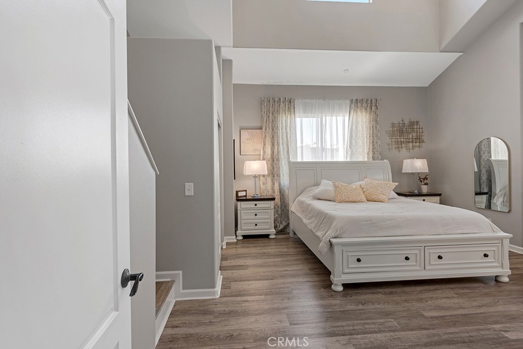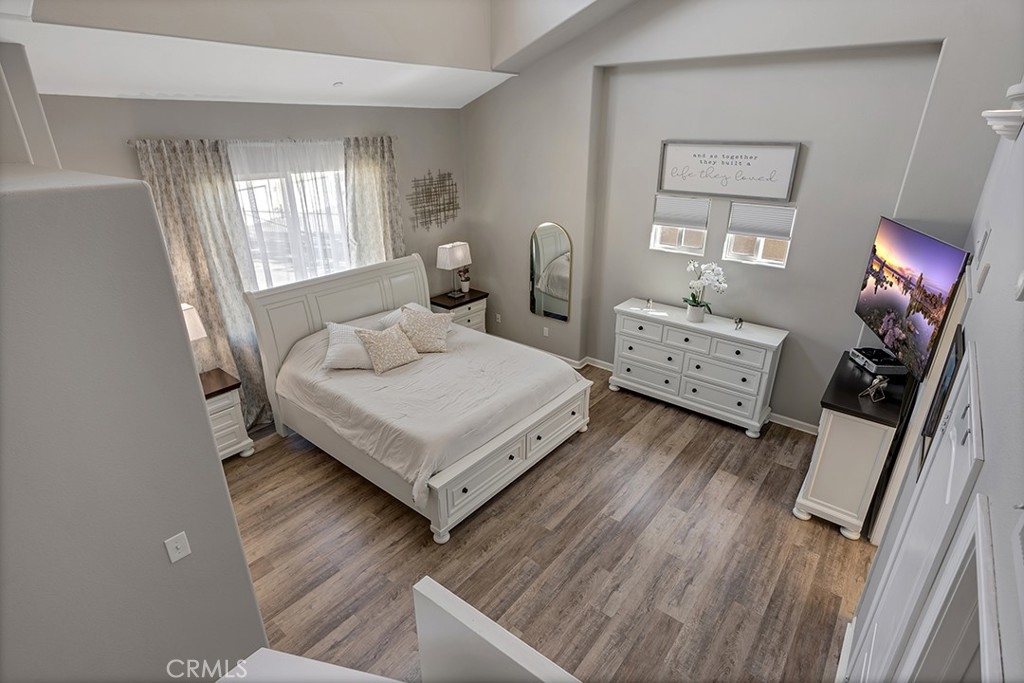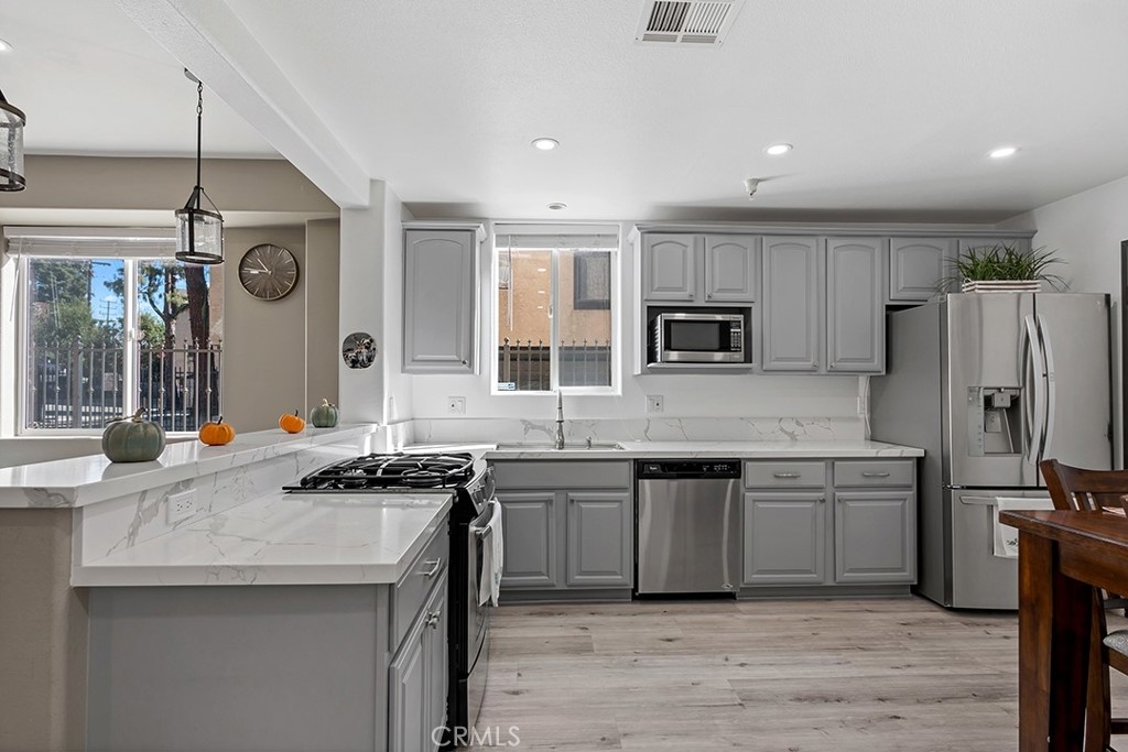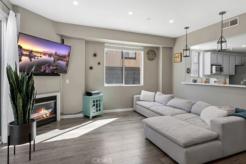 Welcome to this STUNNING 3 Bed, 2.5 Bath townhome in the highly sought-after, gated Sierra Town Homes complex. Step through the PRIVATE ENCLOSED PATIO and immediately feel the calm & exclusivity of a home that feels more like a SINGLE FAMILY RESIDENCE. Inside, the SPACIOUS living room welcomes you with its SOARING ceilings and cozy FIREPLACE, perfect for cool evenings. Sunlight floods the space, creating a LIGHT & BRIGHT atmosphere. From the living room, the open floor plan guides you to the heart of the home—a GOURMET KITCHEN. This EAT-IN KITCHEN is a chef’s dream, boasting stunning QUARTZ COUNTERTOPS, sleek STAINLESS STEEL APPLIANCES, and ample cabinetry, including a LARGE PANTRY. Whether for casual meals or entertaining, the layout offers plenty of space to host friends and family. The new high-quality, water-resistant laminate flooring adds both style and durability, and the kitchen seamlessly opens to the living area, keeping you connected with guests. Head upstairs to the PRIVATE PRIMARY SUITE. The moment you step inside, the soaring ceilings and SPACIOUS layout make an immediate impression. The suite features a large WALK-IN CLOSET for ample storage. A staircase leads to a LOFT AREA, perfect for a HOME OFFICE, nursery, or gym. The PRIMARY BATH is a true retreat with a SEPARATE TUB, SHOWER, and DUAL GRANITE VANITY for a SPA-LIKE experience. The two additional bedrooms are equally impressive, offering WALK-IN CLOSETS and easy access to the full upstairs bathroom with a SHOWER/TUB COMBO and another DUAL GRANITE VANITY. For convenience, the home has LAUNDRY HOOKUPS inside, and the ATTACHED 2-CAR GARAGE provides direct access to the kitchen, making it easy to unload groceries. The garage also offers extra storage space to help keep your home organized. This END UNIT townhome is MOVE-IN READY, recently updated with designer two-tone paint and new carpet. The low monthly HOA of $350 includes WATER and TRASH, allowing you to enjoy the benefits of this GATED COMPLEX without hidden costs. The community is peaceful, offering the perfect escape from city life while remaining close to schools, shopping, and dining. If you’re looking for a home that combines SPACE, STYLE, and FUNCTIONALITY, this is the one. With 1,880 SQ. FT. of living space, soaring ceilings, and a modern interior, this townhome truly has it all. Schedule your private tour today to experience the luxurious lifestyle this home offers. Don’t wait—this steal WON’T LAST LONG!