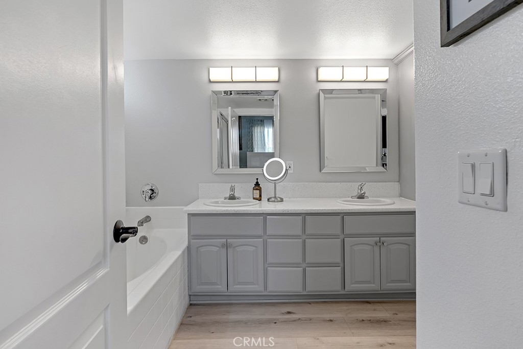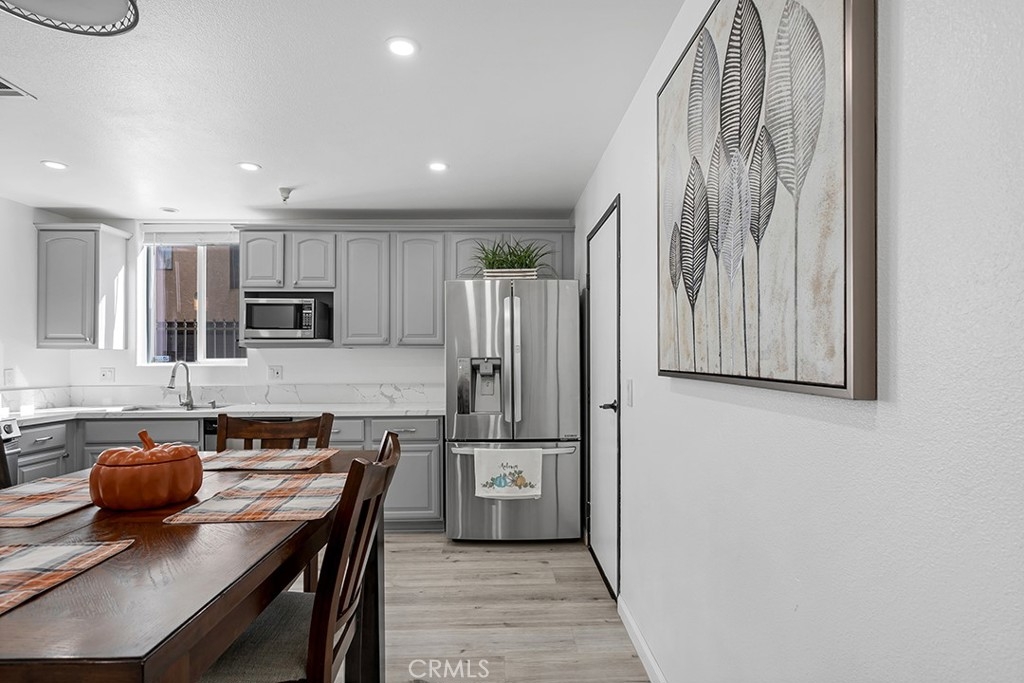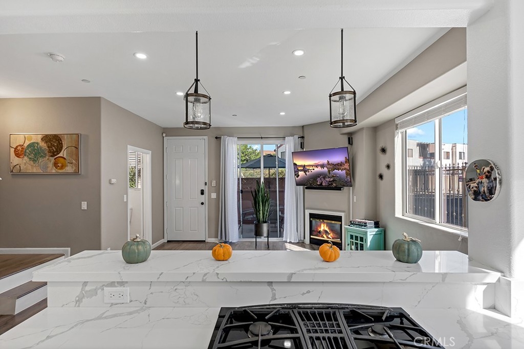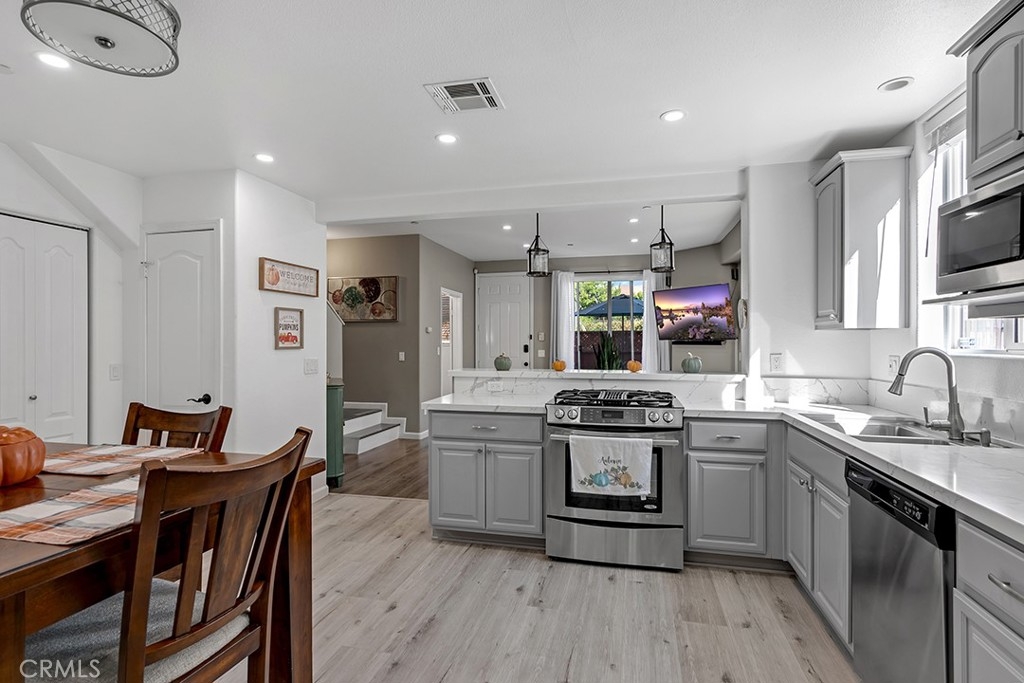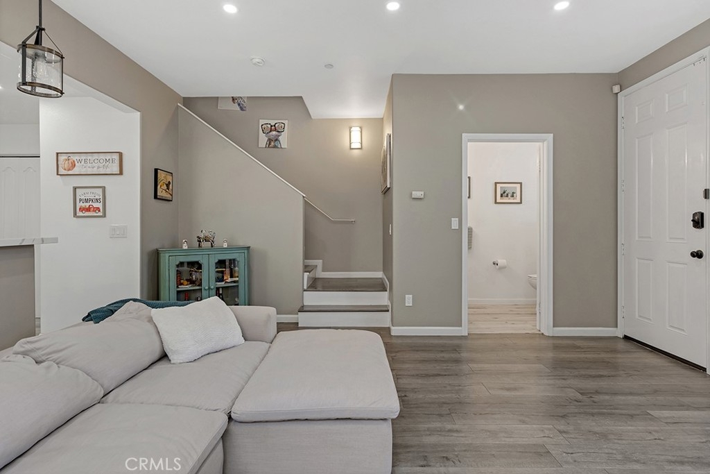 Welcome to this STUNNING 3 Bed, 2.5 Bath townhome in the highly sought-after, gated Sierra Town Homes complex. Step through the PRIVATE ENCLOSED PATIO and immediately feel the calm & exclusivity of a home that feels more like a SINGLE FAMILY RESIDENCE. Inside, the SPACIOUS living room welcomes you with its SOARING ceilings and cozy FIREPLACE, perfect for cool evenings. Sunlight floods the space, creating a LIGHT & BRIGHT atmosphere. From the living room, the open floor plan guides you to the heart of the home—a GOURMET KITCHEN. This EAT-IN KITCHEN is a chef’s dream, boasting stunning QUARTZ COUNTERTOPS, sleek STAINLESS STEEL APPLIANCES, and ample cabinetry, including a LARGE PANTRY. Whether for casual meals or entertaining, the layout offers plenty of space to host friends and family. The new high-quality, water-resistant laminate flooring adds both style and durability, and the kitchen seamlessly opens to the living area, keeping you connected with guests. Head upstairs to the PRIVATE PRIMARY SUITE. The moment you step inside, the soaring ceilings and SPACIOUS layout make an immediate impression. The suite features a large WALK-IN CLOSET for ample storage. A staircase leads to a LOFT AREA, perfect for a HOME OFFICE, nursery, or gym. The PRIMARY BATH is a true retreat with a SEPARATE TUB, SHOWER, and DUAL GRANITE VANITY for a SPA-LIKE experience. The two additional bedrooms are equally impressive, offering WALK-IN CLOSETS and easy access to the full upstairs bathroom with a SHOWER/TUB COMBO and another DUAL GRANITE VANITY. For convenience, the home has LAUNDRY HOOKUPS inside, and the ATTACHED 2-CAR GARAGE provides direct access to the kitchen, making it easy to unload groceries. The garage also offers extra storage space to help keep your home organized. This END UNIT townhome is MOVE-IN READY, recently updated with designer two-tone paint and new carpet. The low monthly HOA of $350 includes WATER and TRASH, allowing you to enjoy the benefits of this GATED COMPLEX without hidden costs. The community is peaceful, offering the perfect escape from city life while remaining close to schools, shopping, and dining. If you’re looking for a home that combines SPACE, STYLE, and FUNCTIONALITY, this is the one. With 1,880 SQ. FT. of living space, soaring ceilings, and a modern interior, this townhome truly has it all. Schedule your private tour today to experience the luxurious lifestyle this home offers. Don’t wait—this steal WON’T LAST LONG!