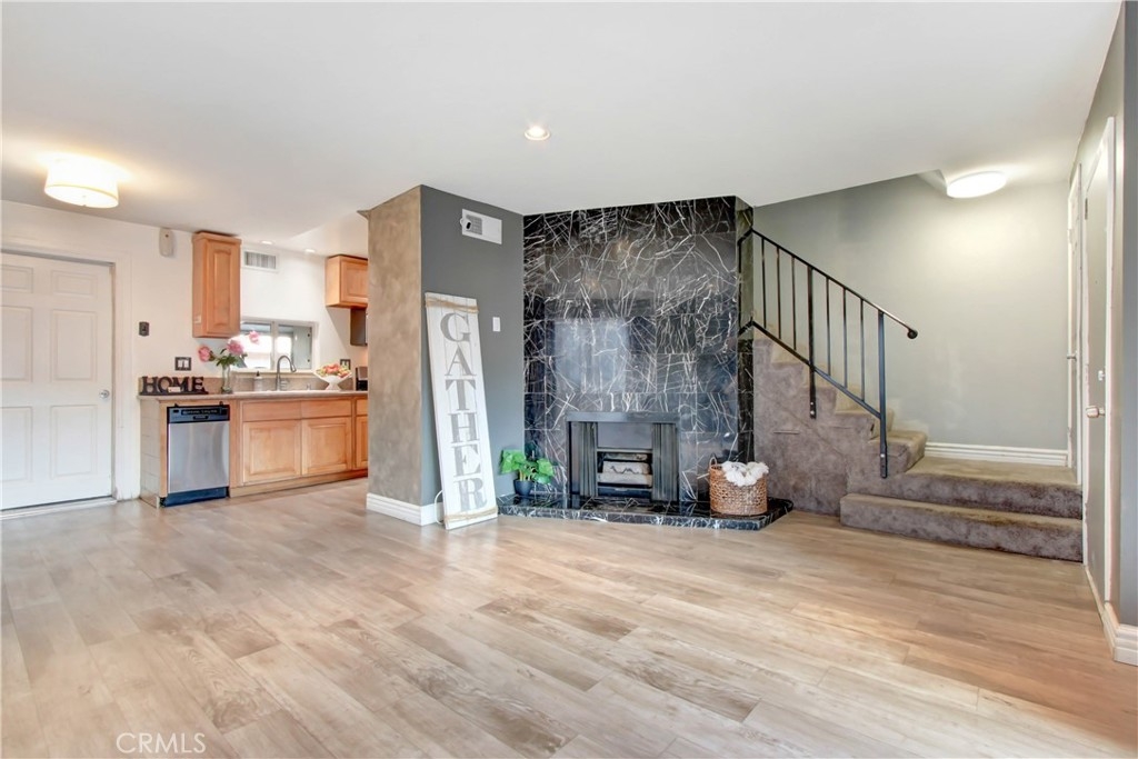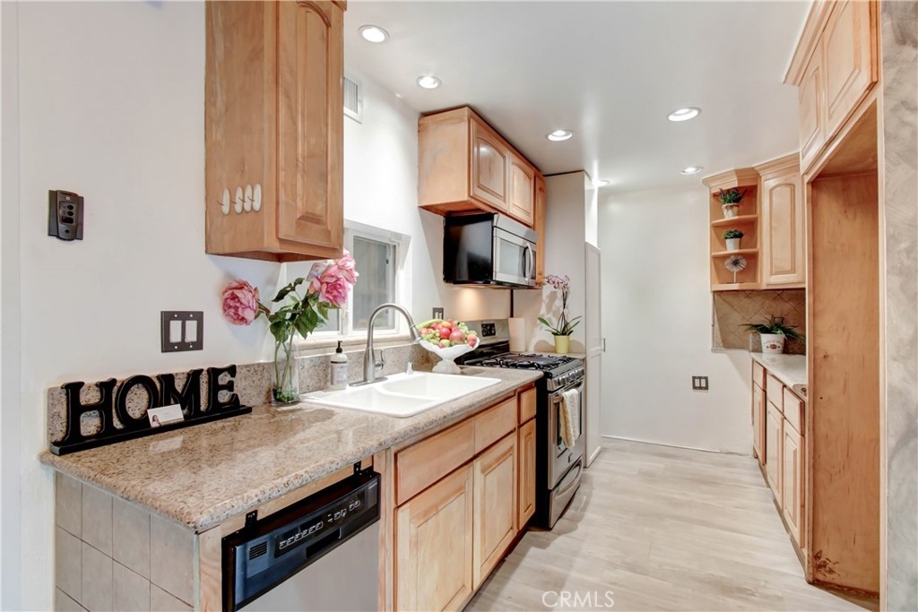 Beautiful three bedroom ,two bathroom, corner unit townhouse in move in condition.This exquisite townhouse features an oversized master bedroom with vaulted ceiling, his and hers closets, double vanity, and recently refinished bathtub. Second bedroom features a cozy private patio with lattice for additional privacy, open floor plan with marble stone fireplace, central air and heat, recessed lightning throughout. Updated kitchen with custom granite countertops.and stainless-steel appliances.Attached private garage for easy access ,laundry inside the unit on top floor . Located just 10 minutes from CSUN, close to shopping, transportation and a recently built community park.