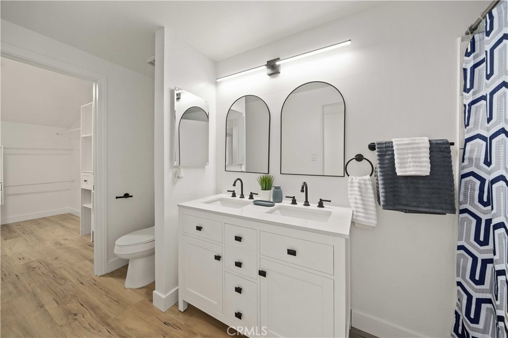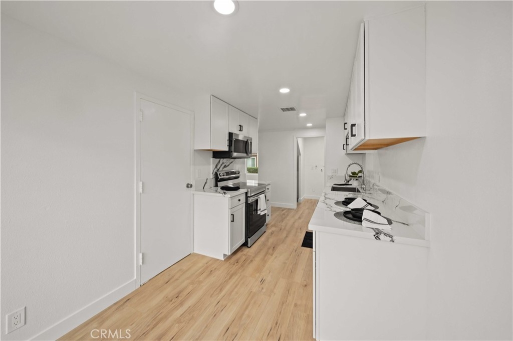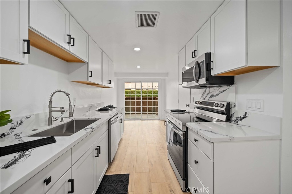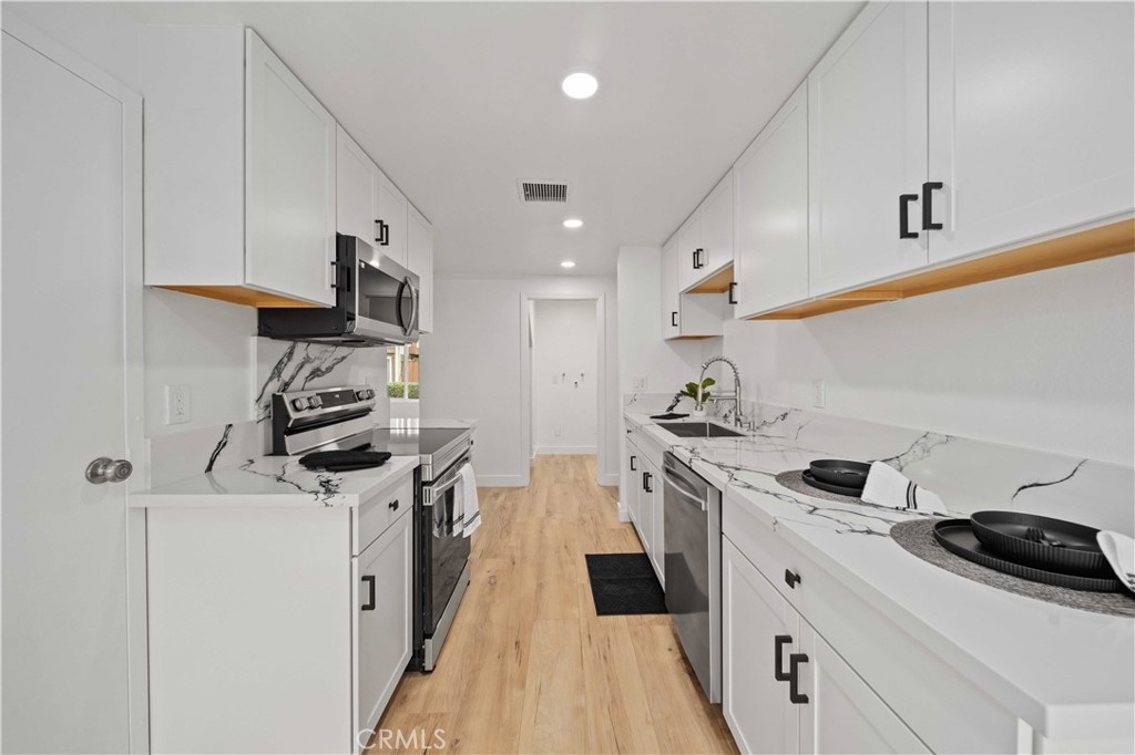 Welcome to this beautifully updated 3-bedroom, 2-bathroom condo nestled in a well-maintained community with low HOA fees. This turnkey home is move-in ready and packed with modern upgrades and functional features designed for comfortable living. Step inside to discover a spacious and thoughtfully designed layout featuring a bright living room, generously sized bedrooms, and a well-organized master closet. The home has been freshly renovated with all-new flooring, modern lighting, new interior paint, and new vanities in both bathrooms. The stunning kitchen showcases brand-new cabinets, elegant quartz countertops, new stainless steel appliances, and a roomy pantry. Conveniently located right next to the indoor laundry room, the kitchen area is as practical as it is stylish. Enjoy the benefits of a full bathroom on each floor, newer windows for energy efficiency, and ample parking with a 1-car attached garage plus an additional assigned space. The community also features lovely landscaped grounds, perfect for relaxing or taking a stroll. Located minutes from the 5, 405, and 118 Freeways, this condo is close to a variety of shopping, dining, and everyday conveniences. Whether you’re a first-time buyer, investor, or looking for a low-maintenance lifestyle, this condo offers unbeatable value. Don’t miss your chance—schedule your private tour today!