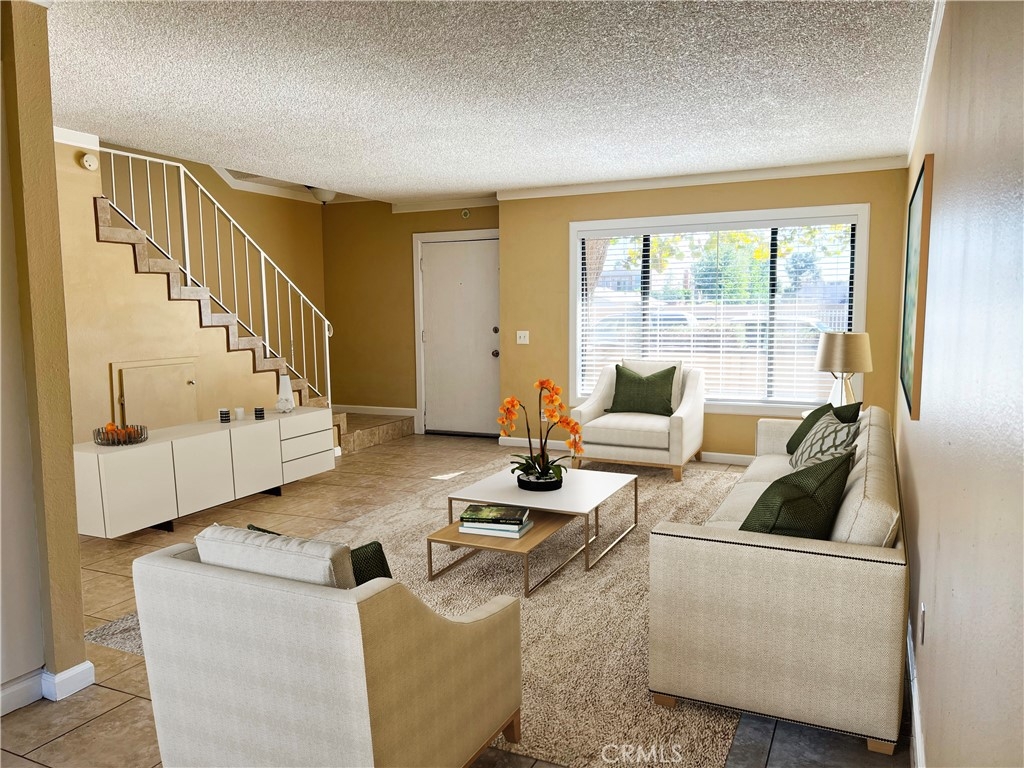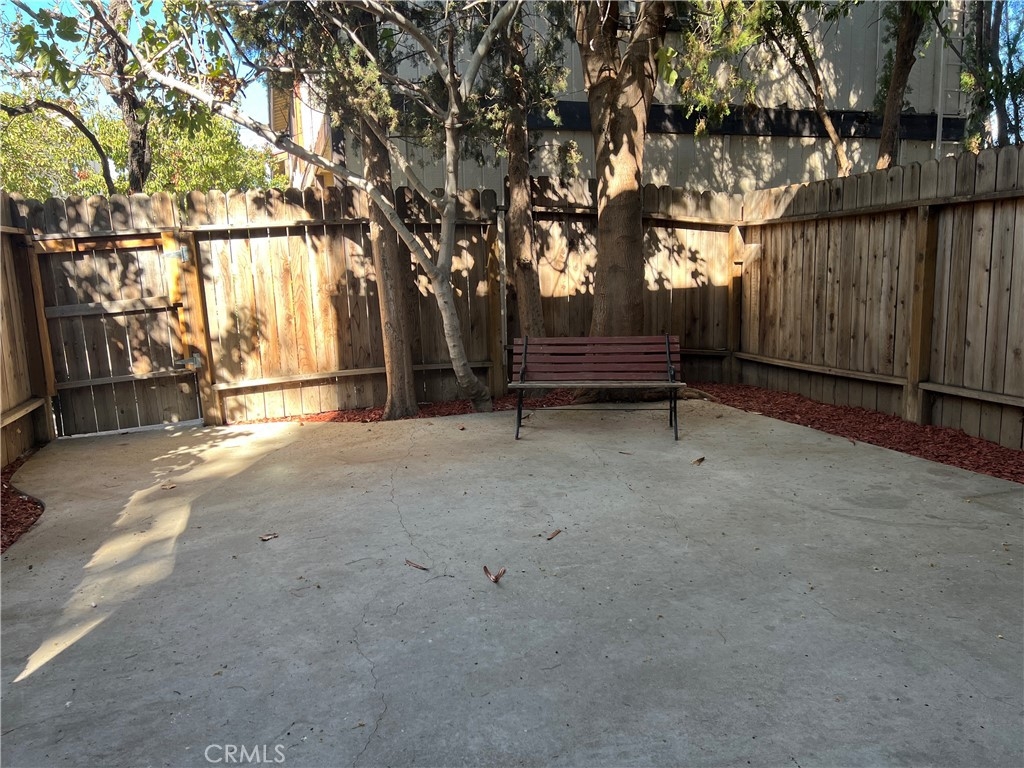 Wow! Absolutely gorgeous two-level, spacious townhome! Huge rear gated & private patio, with room for outdoor seating & dining, under wonderful large, mature trees! Like having your own little park! PLENTY of room, for lots of big BBQ get-togethers! Wonderful south-facing front patio as well, with morning sun! Even room for gardening! This corner unit has south, west, and north facing windows, for lots of sun & warmth! High ceiling in master bedroom, upstairs washer & dryer (included), central to all the bedrooms! Deep double-sink in kitchen, four-burner gas stove & oven (included) and vented range hood with individual lighting. Porcelain tile floors & granite counters in the kitchen, and a waterline for ice-maker! Brand new carpeting in all the bedrooms, and beautiful new window blinds thruout! Complex has a community pool, too! Great private double-garage, with built-in storage, too! Hurry, this one won't last!