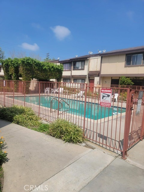 This spacious two-level condo offers 2 bedrooms and 2 bathrooms. The main floor boasts an open-concept layout, seamlessly connecting the living room, dining area, and kitchen, with easy access to a private concrete patio and an attached 2-car garage designated for this unit. Upstairs, you'll find two generously sized bedrooms separated by a full bathroom. Additional features include central heating and air conditioning, along with a laundry area (gas and electric) located in the garage. The community includes a ground-level pool and spa, surrounded by mature trees and lush landscaping.