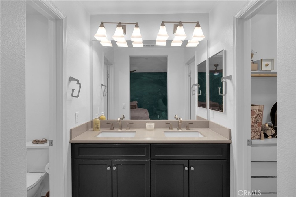 This newly built, 2017 contemporary townhouse is located within a gated and secure community of walnut village. It offering beautifully maintained grassy common areas ideal for children, pets, or quiet outdoor enjoyment. Designed for elevated living, this 2-bedroom, 3-bathroom residence with a private office features an open-concept layout that flows seamlessly into a sleek, modern kitchen with stainless steel appliances, quartz countertops, and custom cabinetry—perfect for stylish entertaining and everyday comfort. Designer built-ins and custom window treatments enhance the space while abundant natural light fills the home. It also has in unit washer and dryer! Both bedrooms are appointed as luxurious primary suites located on opposite sides of the hallway for optimal privacy. Each featuring its own spa-inspired full bathroom, providing privacy, comfort, and flexibility. Modern finishes and upscale fixtures are carried throughout all bathrooms, creating a refined, hotel-like atmosphere. A private balcony extends the living space outdoors and is ideal for BBQs, relaxing, or enjoying the refreshing California breeze. The attached two-car garage adds convenience and security, while the central Panorama City location places shopping, dining, and parks just moments away. This home is ideal for a first-time buyer seeking modern comfort, a downsizer looking for low-maintenance luxury, or anyone desiring a larger living space with enhanced privacy. Offering thoughtful design, community amenities, and contemporary elegance, this residence delivers a lifestyle that adapts effortlessly to your next chapter.