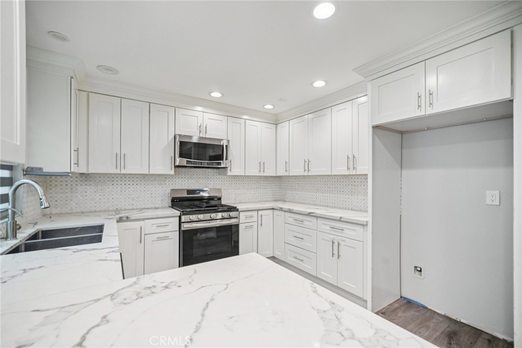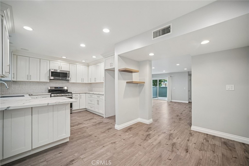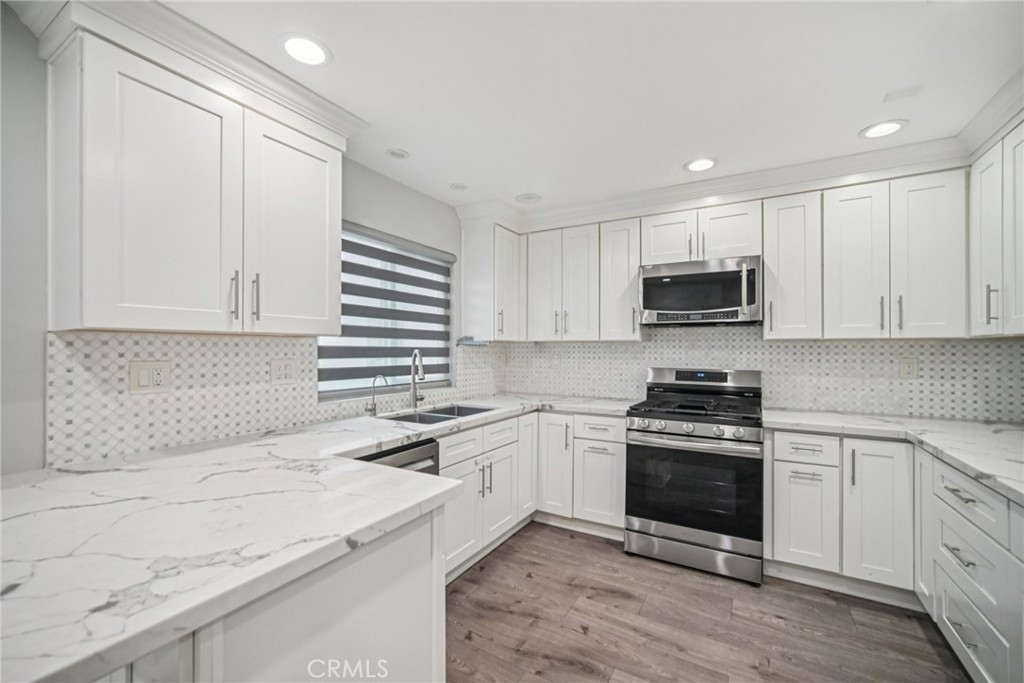 Beautifully remodeled townhome located in a quiet desirable area of Van Nuys. Features include 3 bedrooms and 2.5 updated baths, large living room with fireplace, dining area opens to the updated kitchen with quartz counter and stainless steel appliances, two car attached garage with direct access and a bonus room can be used as an office. Additional features include laminated flooring and recessing lighting throughout, newer paint, updated dual pane windows, large private patio, community pool/spa just minutes to Kaiser Permanente and so much more.