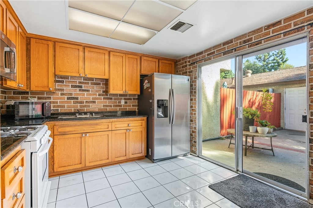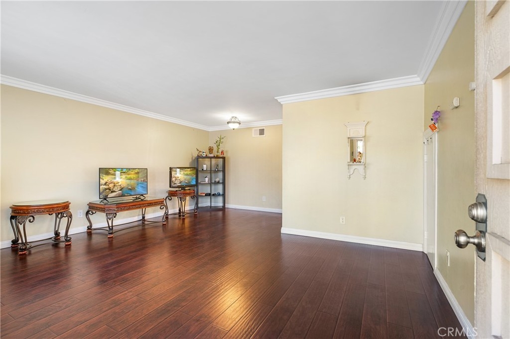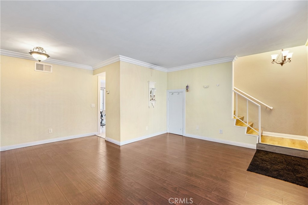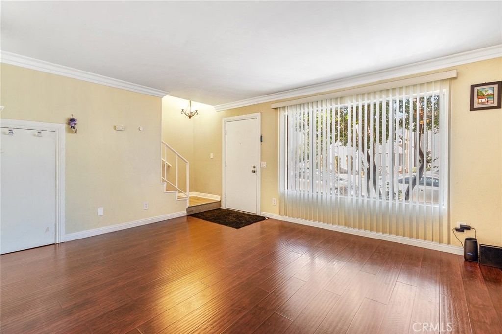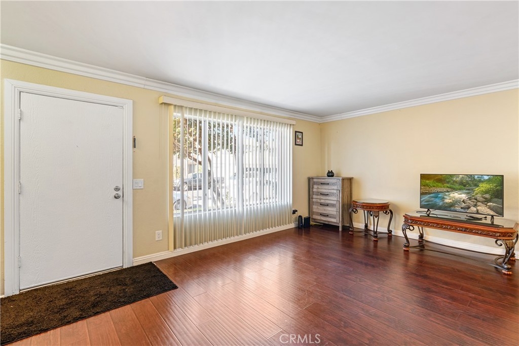 Welcome to this two-story townhome offering both comfort and convenience. The spacious living room features crown molding and flows seamlessly into the dining area. The open kitchen includes a cozy breakfast nook, perfect for casual dining, and a convenient powder room for guests. Upstairs, you'll find a generously sized primary bedroom with a vanity area, as well as a full bathroom shared with the second bedroom. What truly sets this townhome apart is the expansive 460 sq ft private patio, accessed directly from the kitchen, which provides the perfect space for outdoor relaxation and entertaining. The patio leads to a two-car garage, complete with a laundry area. Enjoy the full amenities of the community, including a sparkling pool, spa, kids' pool, and a picnic area. The unit entrance has direct access from Willis Avenue and is ideally located with easy access to public transportation, dining options, Panorama Mall, and The Plant, making this an exceptional opportunity in a prime location!