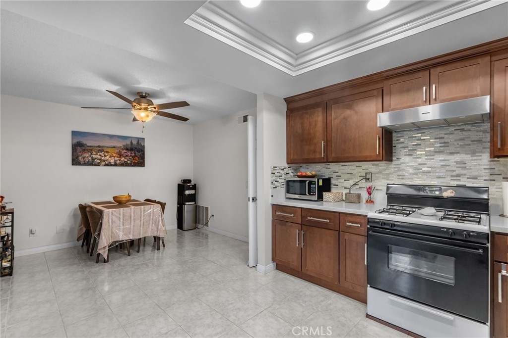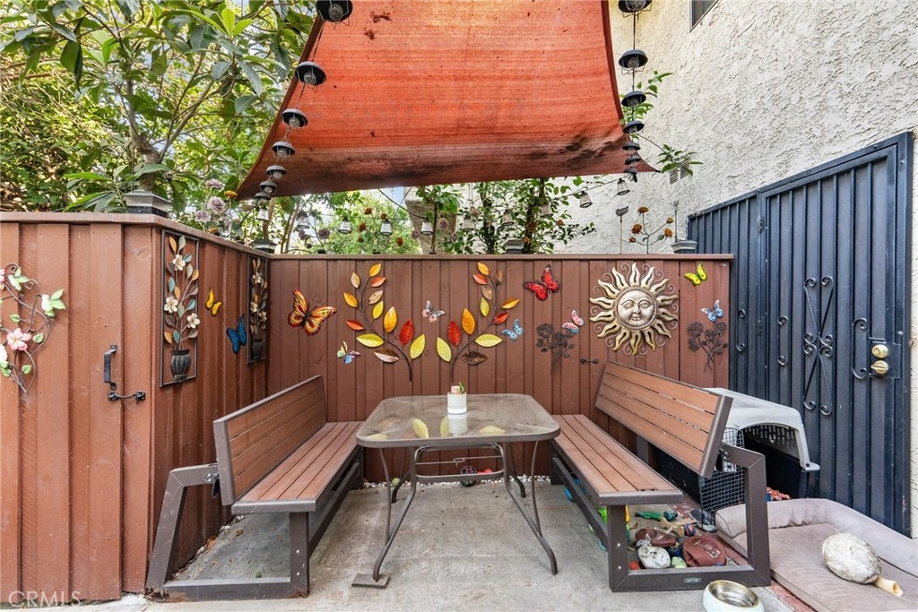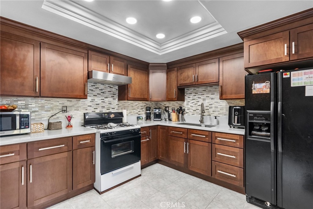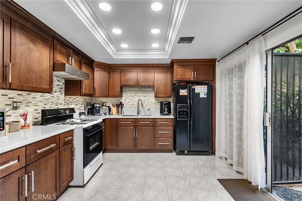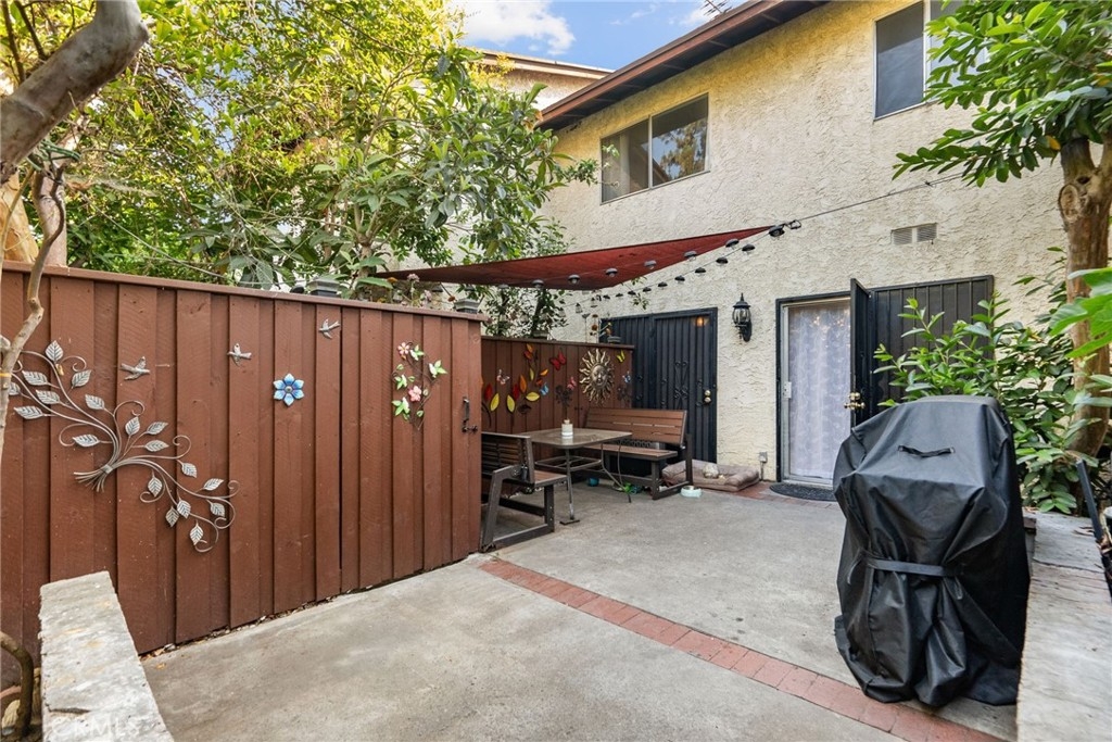 Welcome Home to Style, Comfort, and Turnkey Perfection! Nestled within a secure, beautifully maintained HOA community, this charming 2-bedroom, 1.5-bath townhome is the epitome of pride of ownership. Thoughtfully updated and meticulously cared for, every inch of this residence reflects modern style and move-in-ready ease—making it an ideal first-time buyer’s dream! Step into the refreshed kitchen featuring gleaming quartz countertops, elegant interlocking glass and metallic mosaic tile accents, and gorgeous real wood cabinetry with soft-close doors and roller drawers. Enjoy the sleek double-bowl farmhouse sink, recessed lighting, and new crown molding—plus a stove and refrigerator included for added value. Throughout the home, you’ll find thoughtful upgrades like white ceramic tile flooring in the kitchen, rich, dark ceramic tile in the living room, new plush carpeting on the stairs and in the bedrooms, and lighted ceiling fans in both the dining and living areas. The freshly textured and painted walls, new baseboards, updated switches and outlets, and metal security screens all add to the home's refreshed, modern feel. Both bathrooms were tastefully remodeled, blending style with function. Step outside to your private, shaded patio oasis, complete with a built-in picnic table, benches, and BBQ area—perfect for entertaining or enjoying a peaceful morning coffee. From here, access the spacious 2-car garage, featuring an automatic door, ample storage cabinetry, a workbench, and even a premium Miele washer and dryer—included! All of this comes with access to the community’s resort-style amenities, including a sparkling pool, relaxing spa, kids’ wading pool, and lush picnic area. This is more than just a home—it’s a lifestyle. Whether you're a first-time buyer or looking to upgrade your everyday living, this townhome checks all the boxes. Run, don’t walk—your escrow adventure begins here!
