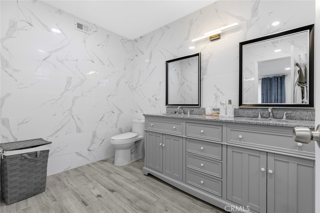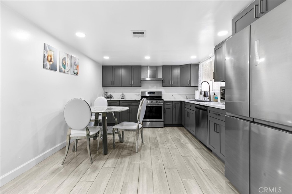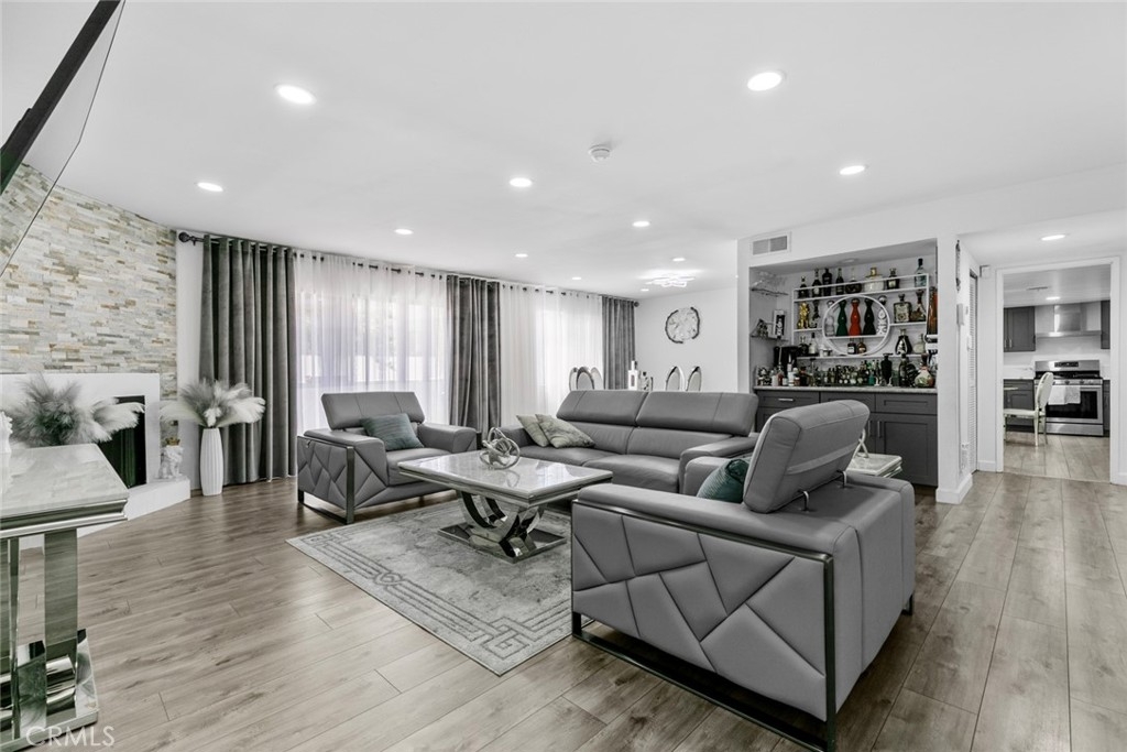This exceptional HUGE remodeled and spacious corner Town House unit featuring 3 bedrooms, 2.5 bathrooms, and an attached side-by-side 2-car private garage, with approximately 1,971 sqft. Situated at the rear of a fully gated community, this home offers added privacy, quiet, and abundant guest parking behind the gates. The entry level includes a private garage with direct access to a large utility and storage room with full-size laundry hookups. The main floor has a bright, open-concept living area with new luxury vinyl plank flooring, recessed lighting, a fireplace, balcony, powder room, dining area, and built-in bar. The spacious eat-in kitchen features modern cabinetry, stainless steel appliances, and space for a breakfast table. A bonus room on this level offers flexibility as a potential 4th bedroom, office, den, or playroom. Upstairs, the large primary suite includes multiple closets and an remodeled bathroom with dual vanities and a step-in glass shower. Two additional bedrooms and a full hallway bathroom complete the top floor. Beautifully maintained and move-in ready, this home combines size, style, and location in a desirable gated community. MOTIVATED SELLER
