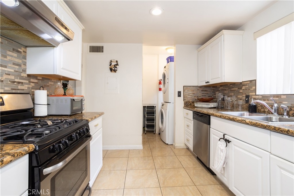This beautiful and spacious tri-level condo with attached 2 car garage is located in a gated community in Panorama City. Conveniently placed near Freeways for easy commute. You will step into a flowing 1,455 square foot of living space, that is in "Move-in-Condition" and is painted in neutral colors. You will find a complementary blend of tile and laminate flooring throughout. Living room, which is on the first floor, has high-ceilings with fire place and direct access to the private patio. The second floor has the dining room, kitchen, half bathroom, and laundry area. The dining area is spacious, to sit the whole family plus guests, and comes with a chandelier. The family's cook is going to appreciate the recessed lighting, abundant cabinets, granite countertops, and complementary backsplash. The kitchen also comes with stainless steal dishwasher and hood range, and has enough space to put your breakfast nook. Next to the kitchen is the laundry area with washer and dryer hook ups. Adjacent to the laundry area is the half bath perfect for guests and also has granite counters. The 2 bedrooms with their own private full bathrooms are located on the third floor. Both bedrooms are spacious and come with ample closet space. The grand bedroom, which also comes with a large walk-in-closet, currently has a bed and can be used for guests or other family members. The grand bedroom's bathroom has a dual sink. The second bathroom upstairs has a granite counter and a shower with tub. The attached 2 car garage is spacious and has a large private storage. Comes with central air & heat for year-round comfort. Community offers pool for entertainment.