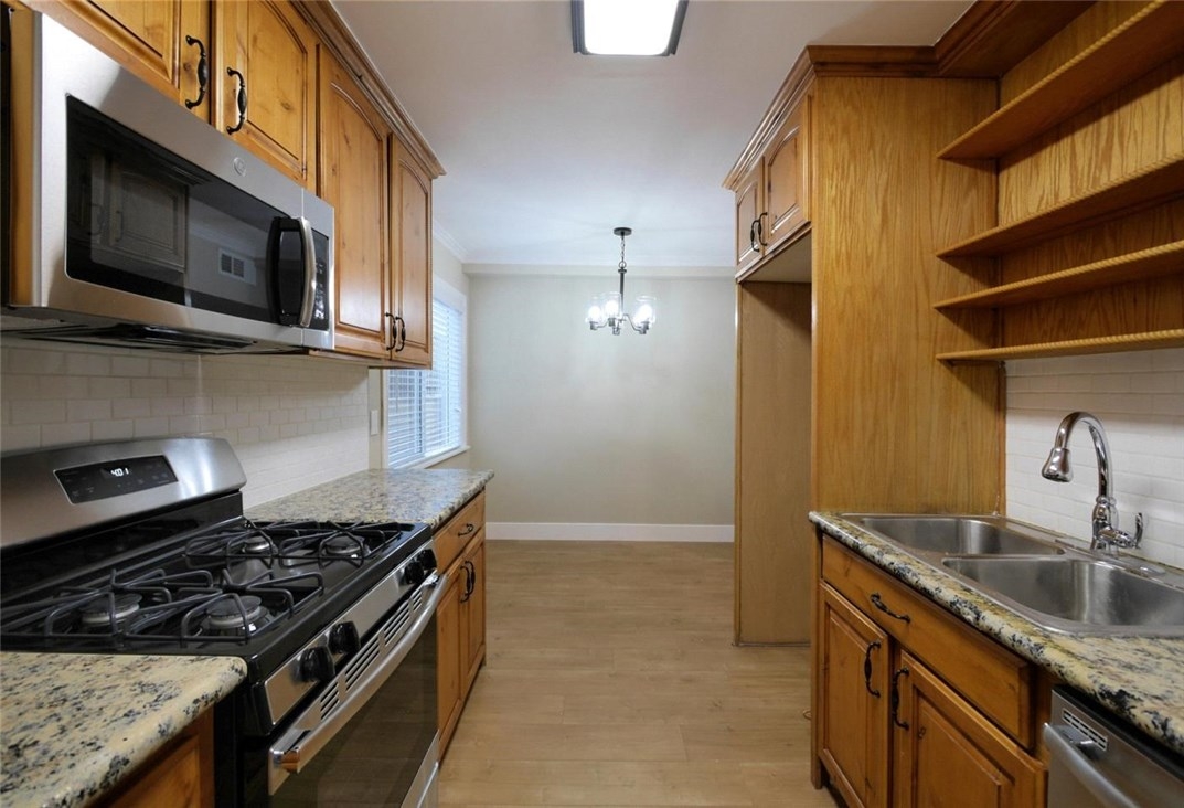 Beautifully renovated condo in Panorama City! The large living room is perfect to have guests over and enjoy the decorative fireplace! Enjoy cooking in the galley style kitchen featuring new stainless steel appliances, granite countertops, with plenty of cabinet space. Upstairs the master bedroom features dual closets. Both bedrooms are very spacious with plush carpeting and plenty of closet space! This gated condo complex offers two designated covered parking spaces and a laundry room. Sure to sell FAST! Request your viewing today!