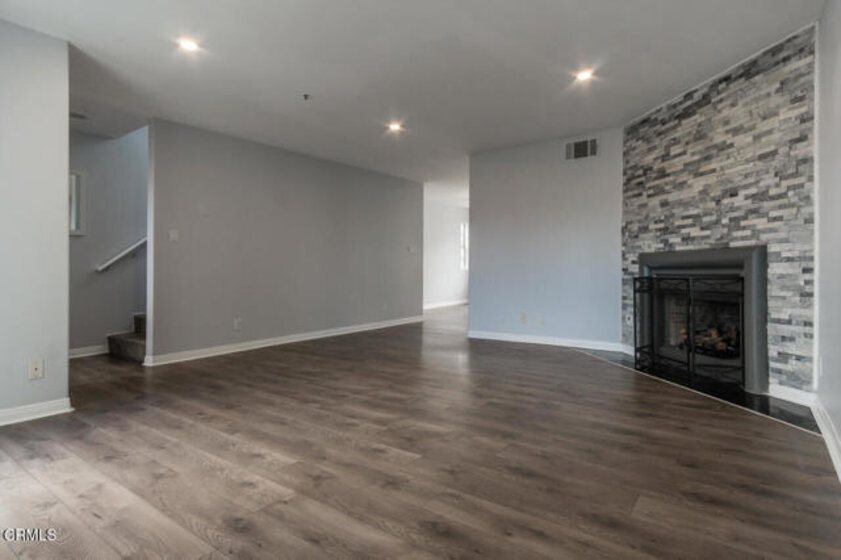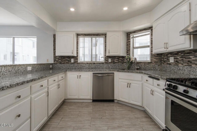 Stylish Corner Unit with Bonus Room & Low HOA! Welcome to 9216 Tobias Ave #22--a beautifully updated townhome in the heart of Panorama City offering comfort, style, and unbeatable value. This spacious 3-bedroom, 2.5-bath home features a versatile bonus room perfect for a home office, gym, or guest space.Step inside to discover a bright living area with stacked stone fireplace, modern laminate flooring, and recessed lighting throughout. The kitchen is a chef's dream with granite countertops, mosaic backsplash, farmhouse sink, and stainless steel appliances.Upstairs, the primary suite boasts a custom-tiled bathroom and generous closet space. Enjoy the convenience of in-unit laundry, a 2-car garage, and a low HOA that includes fire insurance--a rare find in LA!Located in a gated community, this home offers the perfect blend of privacy and accessibility.