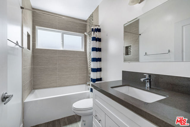 A surprisingly modern 1,740 sqft gated townhome in Panorama City. The natural light that floods the open floorplan living spaces helps to accentuate the pristine laminated hardwood floors. The kitchen is adorned with stainless steel appliances and quartz countertops. Even the upstairs hallway is brimming with natural light thanks to a beautiful skylight. All 4 bedrooms can be found upstairs, with a large walk-in/walk-through closet and en-suite bathroom in the master bedroom and floor-to-ceiling mirrored closets in the other 3 bedrooms. A laundry hookup area can be found upstairs as well. The other 3 bathrooms are conveniently located throughout the home and all come with ample storage space. The back patio space is perfect for entertaining or relaxing! Generous 2-car garage. Surrounding the 12-unit townhome community is a quiet neighborhood close to popular shopping, restaurants, top schools, and more. Low HOA fees.
