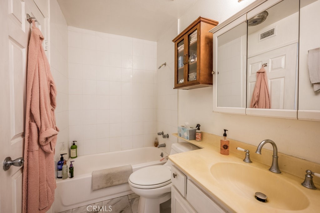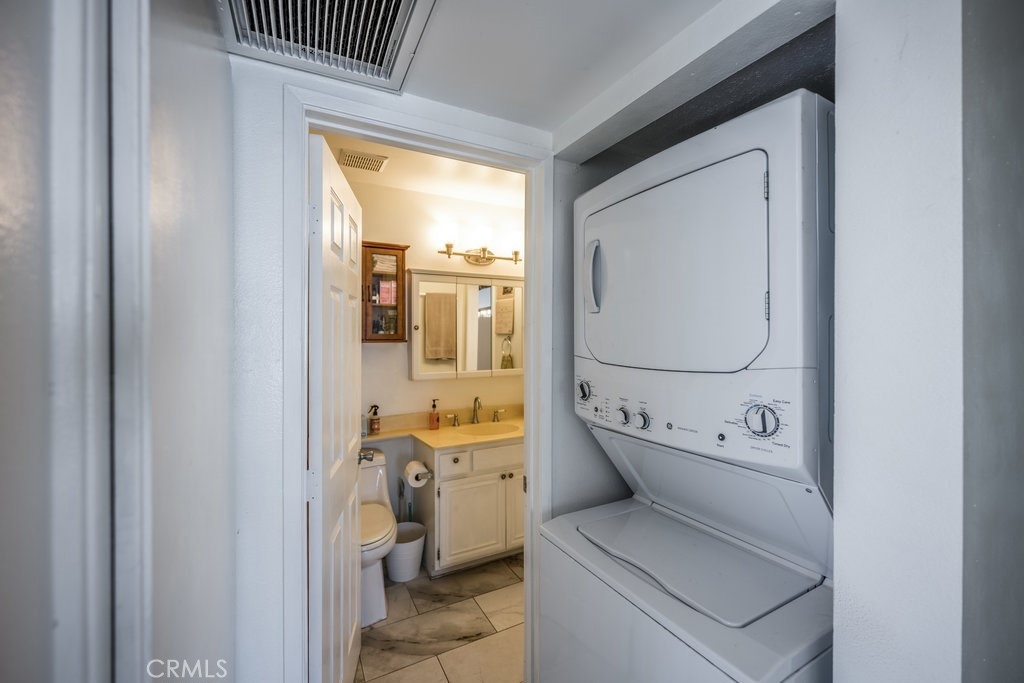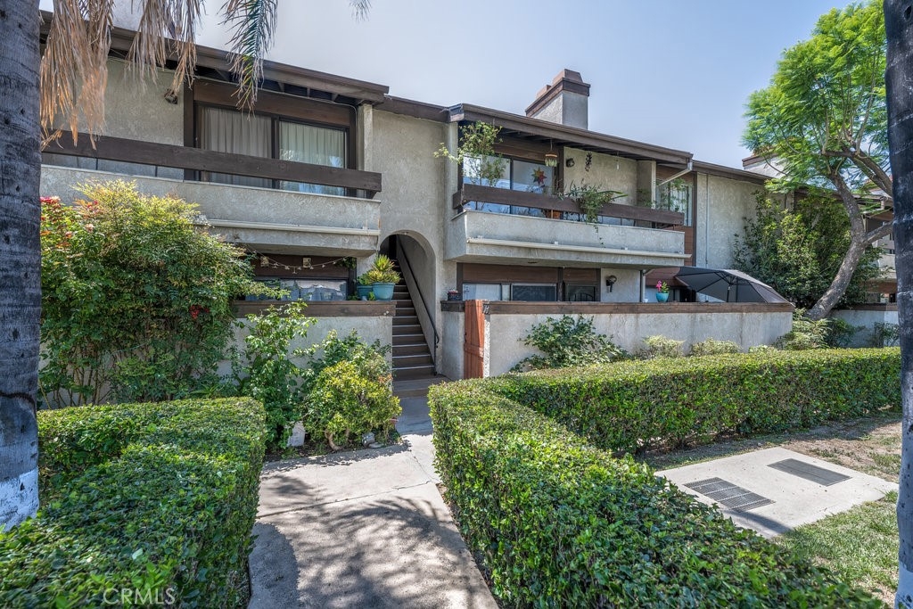Fantastic first-time buyer/investor top floor condo in gated community! The kitchen has lots of new cabinets for plenty of storage and new countertops. There’s also lots off natural light from the skylight and windows. The living room has vaulted ceilings. marble flooring & fireplace. Other features include washer & dryer inside the unit, new central air & heat, large balcony w/pool view, private 2 car garage w/ new garage door & new overhead storage. Private stairwell only shared with one other condo. Washer/dryer, oven/stove, refrigerator all included. LOW HOA at $250 with guest parking available! Easy walking distance to grocery stores, restaurants/fast food. Playground for children right next to the complex which includes some exercise equipment for adults. Very close to freeway entrances for the 5 and the 118. Public transportation stops very close by. Walking distance to public middle school and high school.