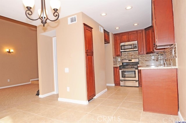 Absolutely immaculate, remodeled, 3 bedroom townhome with a private attached 2 car garage, and a large private patio perfect for entertaining, in highly desirable quiet neighborhood. It offers a convenient open floor plan with high ceilings. Newly remodeled kitchen with wood cabinets, and granite counter top with its tumbled glass back splash tiles, designer tile flooring. Remodeled bathrooms with newer cabinets, sink, granite counters. Laundry in garage area. Complex offers a gated swimming pool and spa.