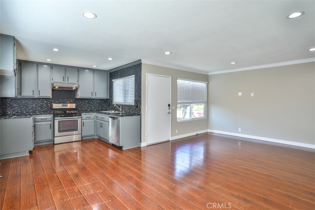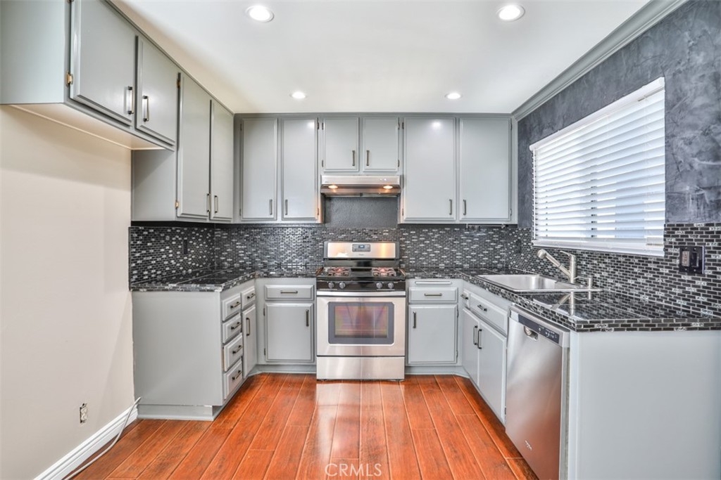 ***SIMPLY BACK ON THE MARKET DUE TO BUYER BEING UNABLE TO PERFORM*** Once arriving at this fantastic and rather complete location, parking right into your own garage and then walking out the side door in order to get to the steps needed. One then arrives at an outside landing spot where a few chairs/table can be used to enjoy the outside weather! To enter, use of two doors are available in order of allowing outside air to easily get inside for a refreshing difference from the outer door! Even before entering, you AND all others will notice the very nicely done flooring throughout! The flooring with the darker wood-look will catch all attention easily. Once inside, to your right would be the dining area or to your left being that of the main living room area. For each of these areas, there is a window which allows complete outside lighting during any clear day. Upon closing the doors and looking further right is the very nice-looking kitchen. The nicely appointed cabinets, tile counter, backsplash, etc. ALL work very well together for daily use or with family and or friends being over. As you then venture towards the hallway leading to both bedrooms on the right and the restroom straight ahead, a closet for lines or other items along with a few services on your left are easily seen and used. Not even to mention the laundry section with four of its own cabinets for such use! Both bedrooms are of good space along with ample natural lighting if so needed and available. The restroom is complete with nothing else but more good looks given the two glass shower doors and the nice counter around the sink! It is of importance to visit and see the outsides areas that are a part of the complex since this and what is so avaiable in sheer walking distance is of great use!